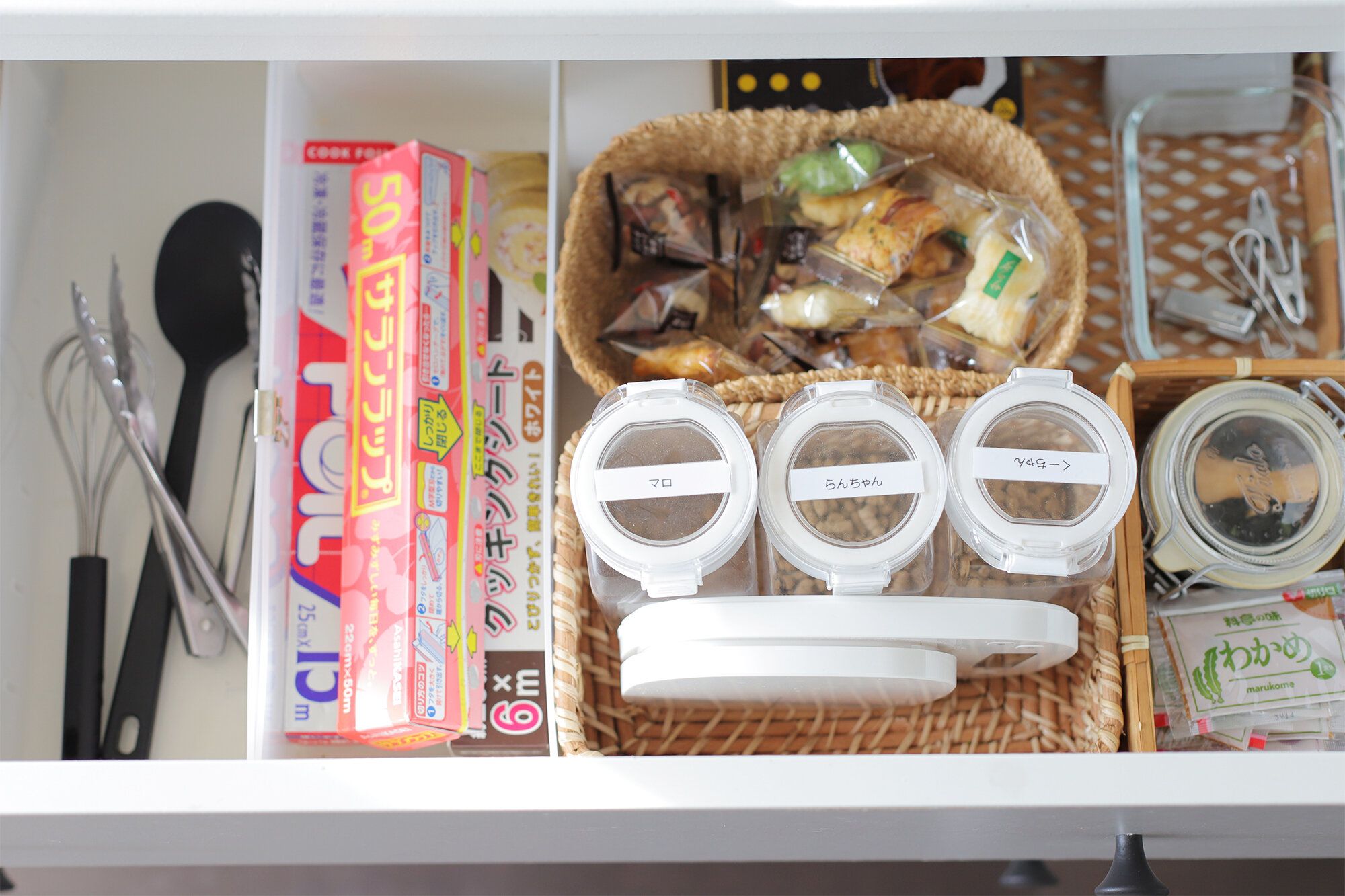 わが家のキッチン収納は、使わなくなった収納ケースの引き出しだけ使用したり、