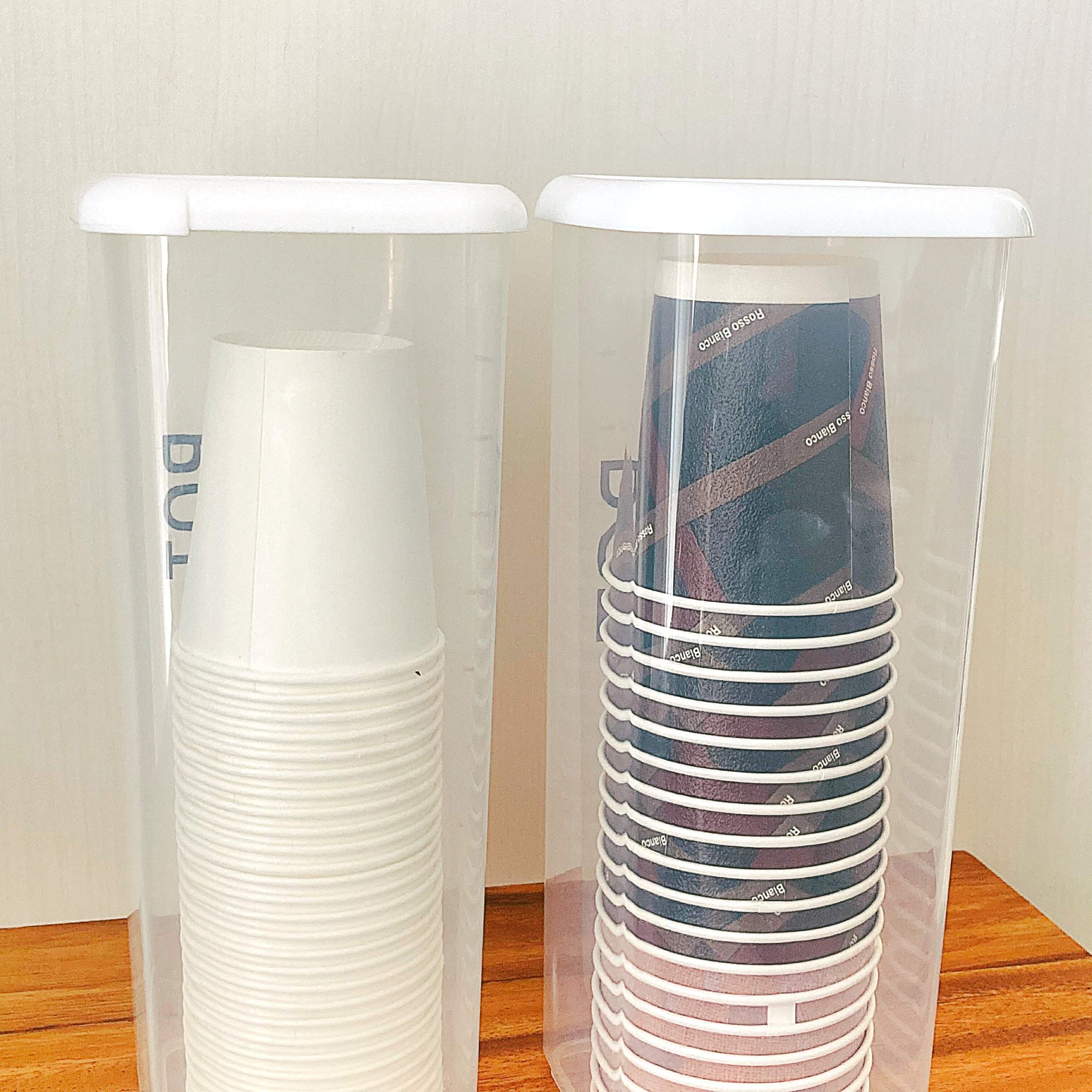 さらに容器の材質がポリプロピレンでしっかりとしているので紙コップが潰れる心配もありませんし、ふたもついているので汚れも防止できます。飲み口を下にして入れれば他のカップにさわらずに取り出せるので衛生的です。