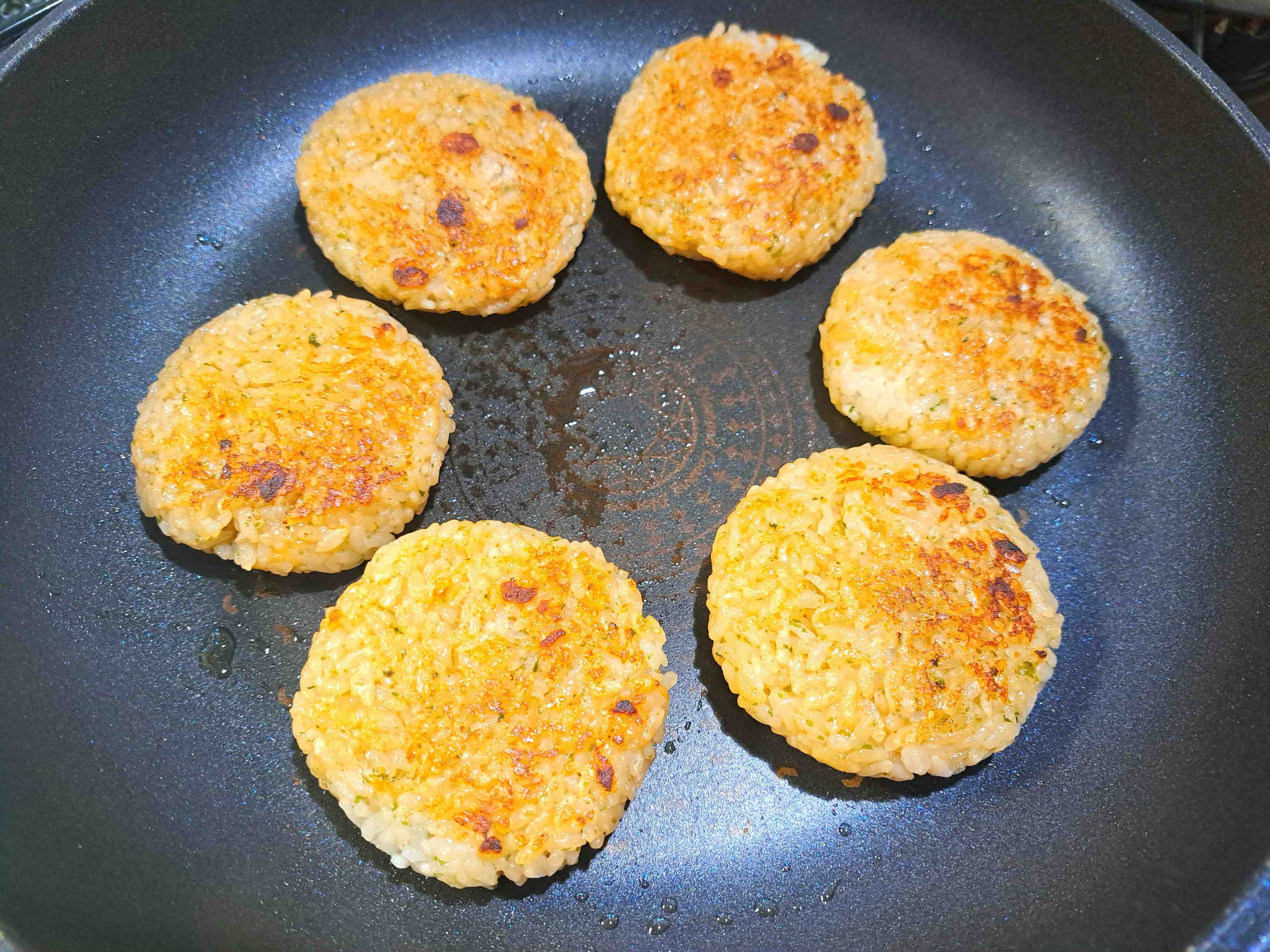 量でむすび、ごま油を熱したフライパンで