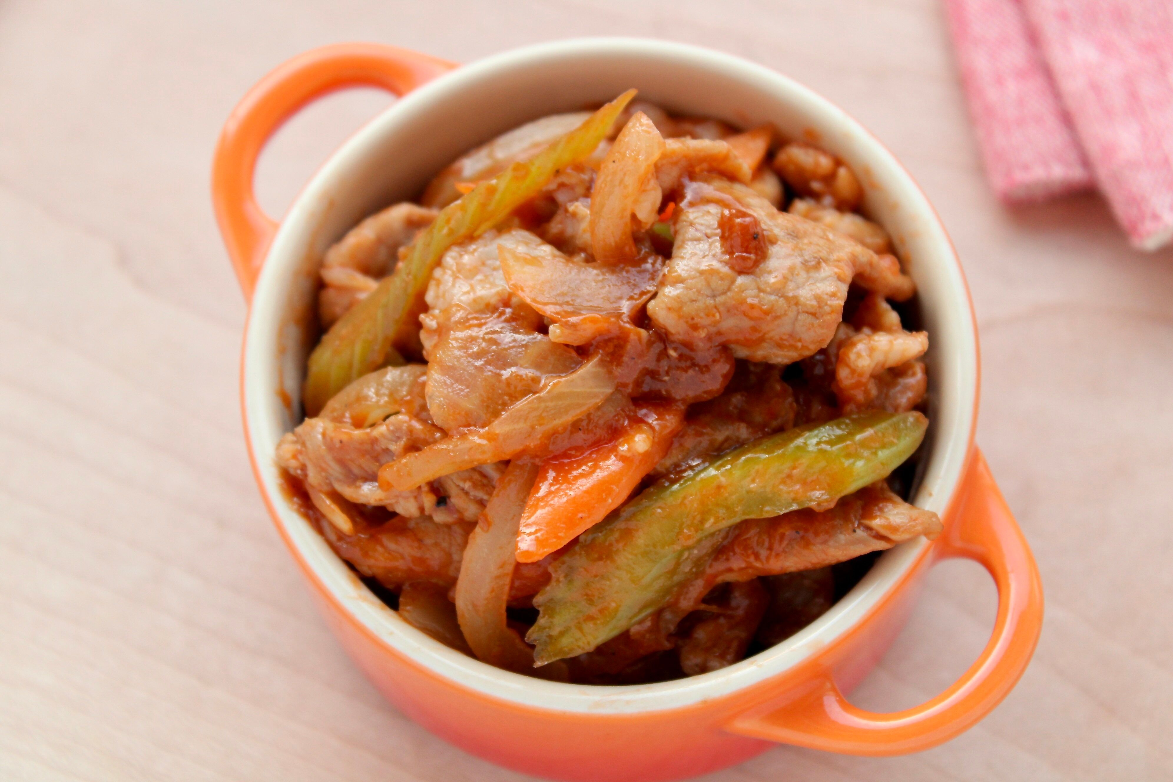 「豚肉と香味野菜のケチャップあんかけ」のレシピ