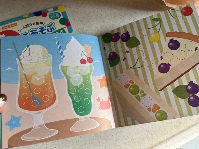 ページを開くとかわいらしいデザインの絵とシールがたくさんついています。
