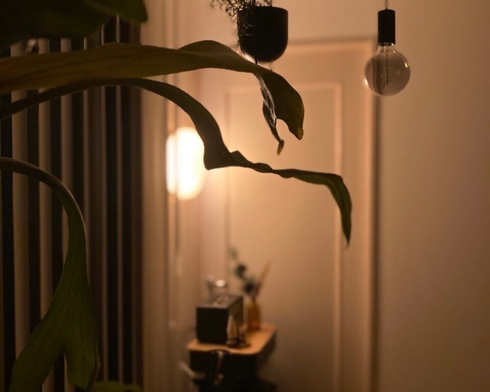 照明だけでなく、植物を吊るすことで場所をとらずに飾ることも可能。