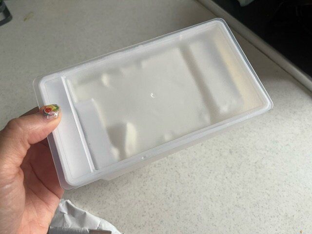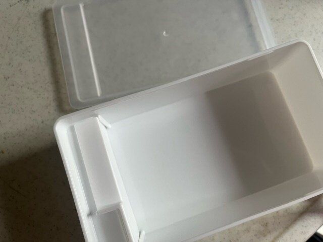 さっそく入れて見ました。これはケーキ用マーガリン200gです。すっぽりピッタリ入りました。