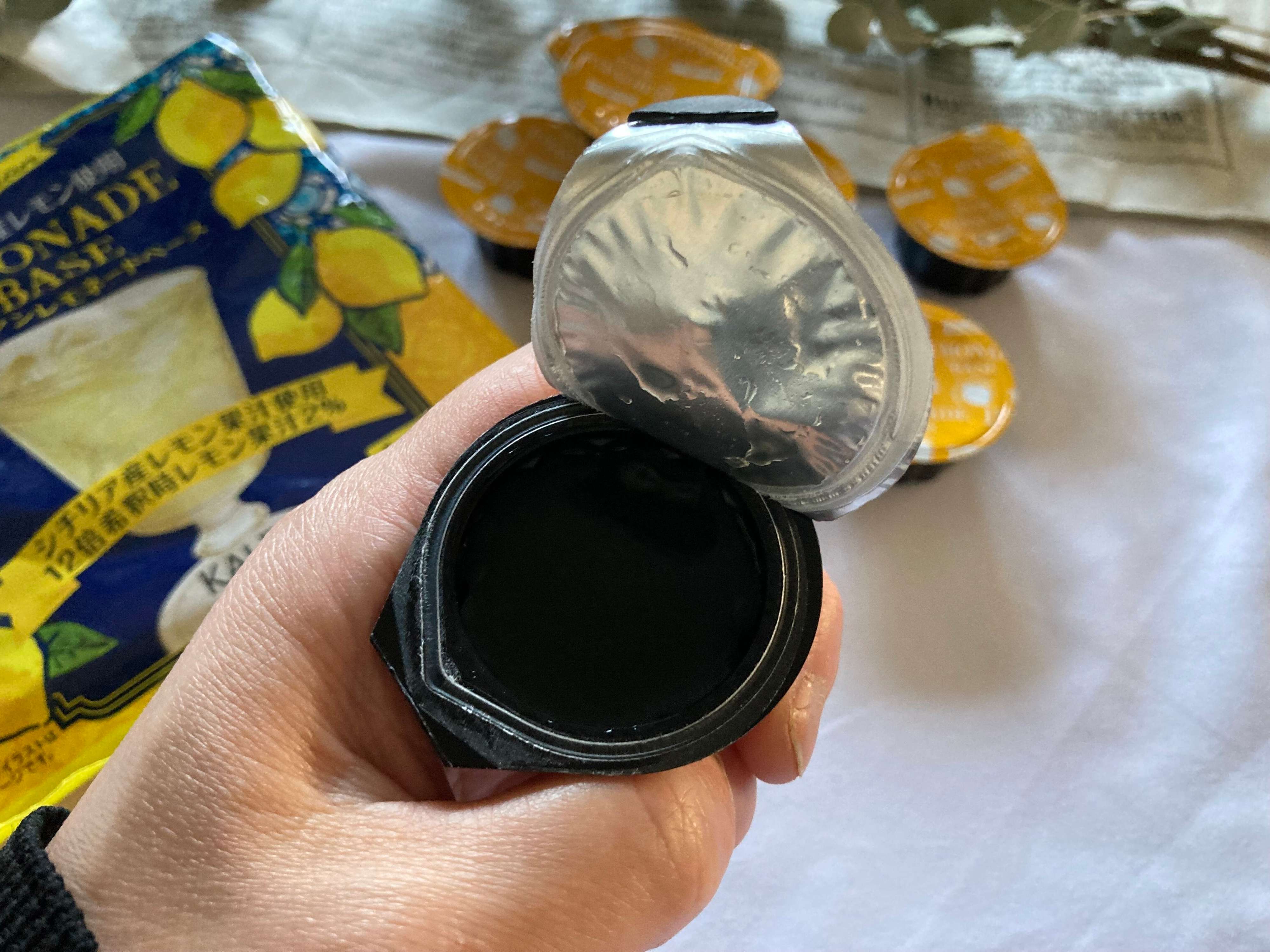 作り方は水や炭酸水、もしくはお湯を180ml~190mlに対し、ポーション1個を入れてよくかき混ぜたら出来あがり。