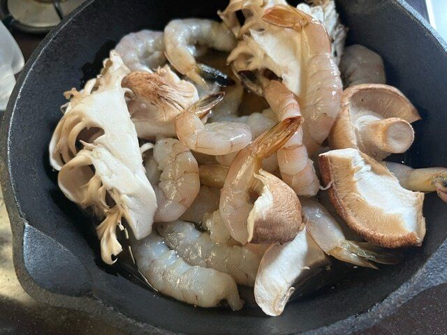 材料はおもに魚介類ときのこ類がおすすめ。