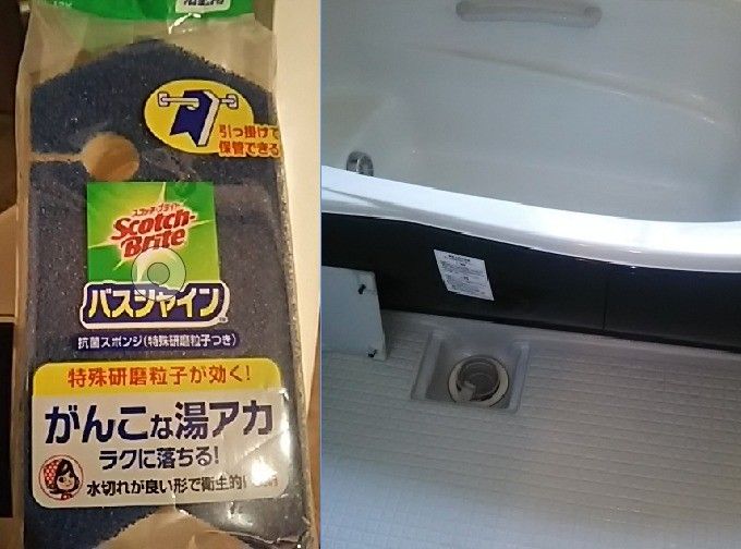 サンキュ!ブロガーcomayoさんの場合、家族全員が入浴した後、その日のうちに掃除をするのがお決まり。使っているのは100均で購入したシンプルなスポンジで、浴槽用と床&壁用の2つを使い分けています。毎日の掃除に気兼ねなく使え、古くなったら買い替えやすい点は100均スポンジのいいところですね。