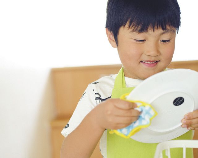 皿洗いは、小さな子どもにとって「なんとなく大人がやってくれていること」としかわかっていないもの。それがお手伝いをすることによって、「だれかが洗ってくれなければ汚れたままなんだ」と、初めて認識することができます。人ごとではなく、自分も家族の一員としてかかわるもののひとつとして、食事の片づけを意識する機会となることでしょう。