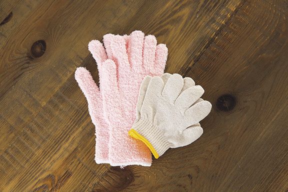 できればマイクロフリース製、なかったら軍手でOK。また、冬は乾燥してほこりが飛びやすいので、大人も子どももできるだけマスクを着用して。
