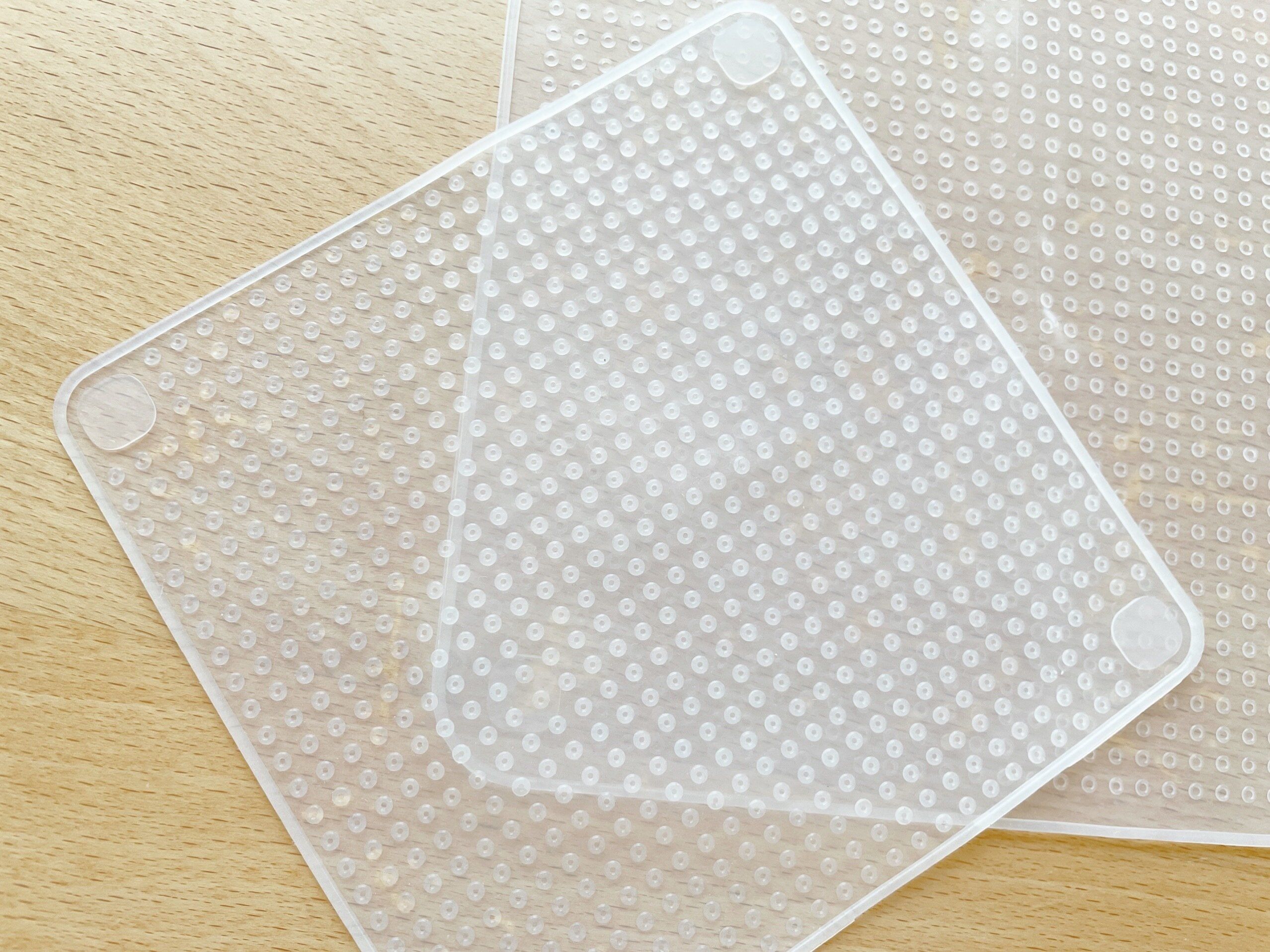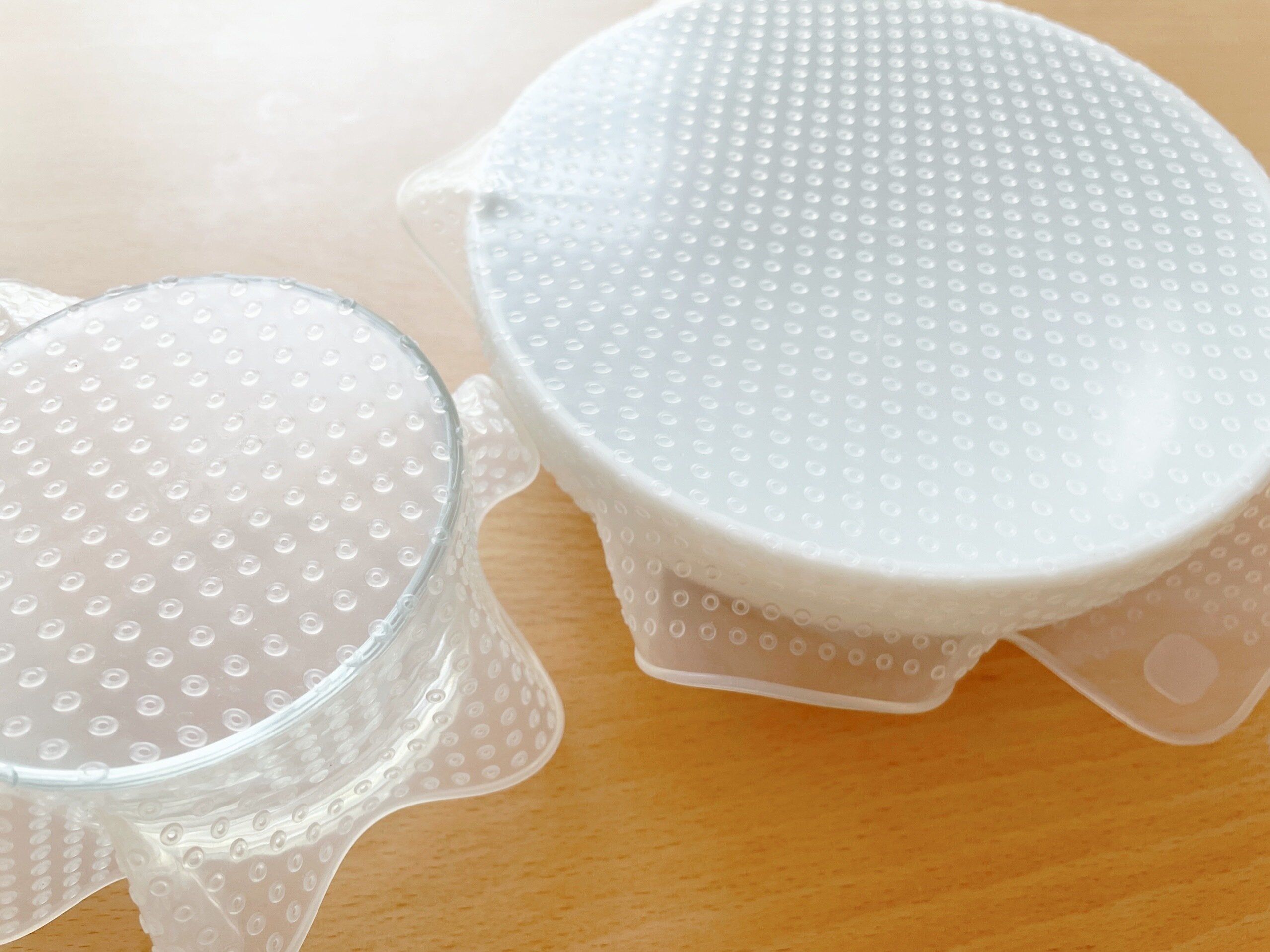お皿をそのまま電子レンジに入れてチンしたい時に活躍するのが3COINSの伸ばして吸着するシリコーンラップ!大中小の3サイズ入りで税込330円のアイテムです。