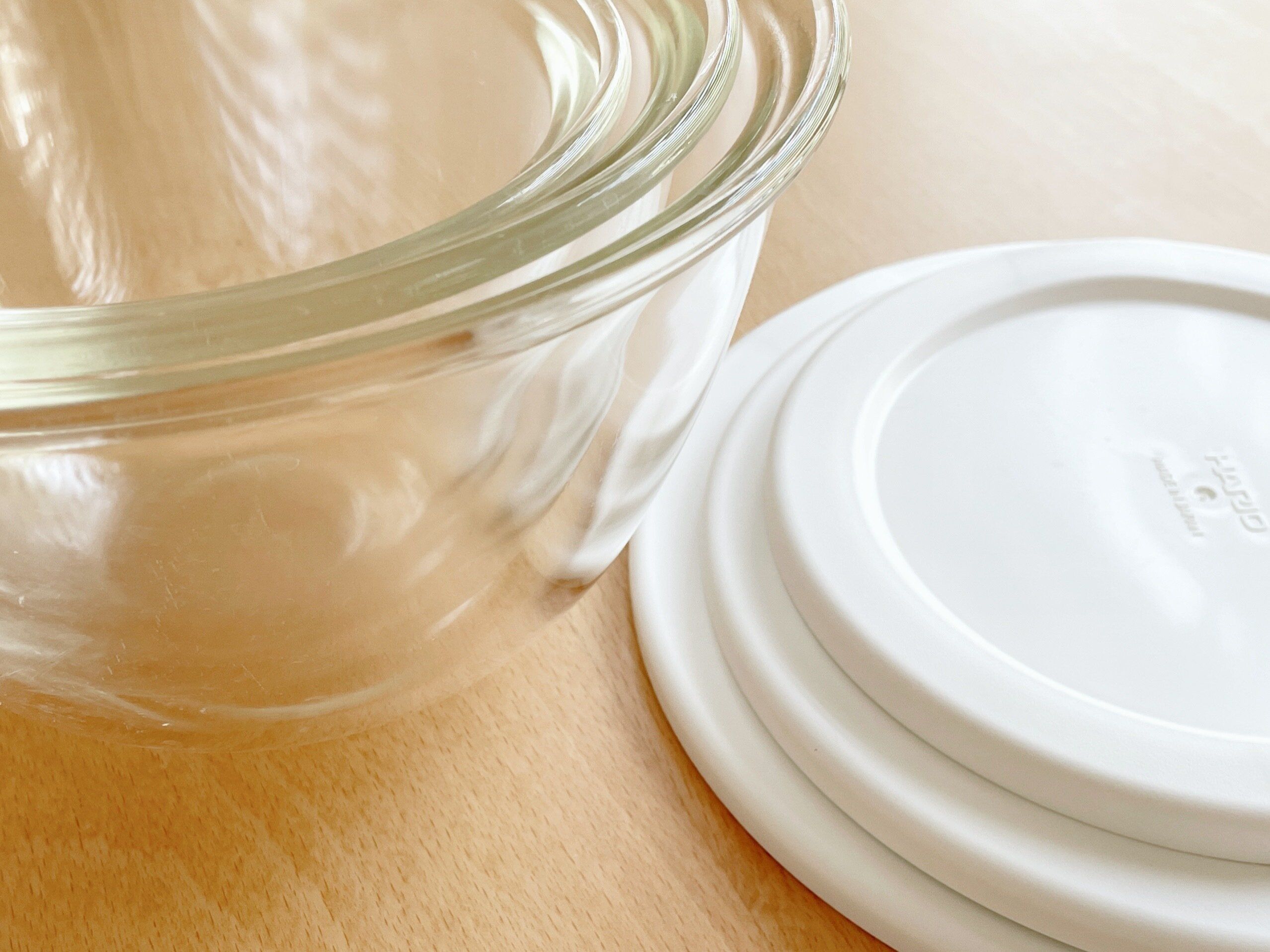 HARIOの下ごしらえや調理・保存に便利なフタが付いた深型ボウルセット。フタをしてレンチン調理ができ、水切りもフタをしたままで可能。取り分けの際に余った分はボウルにフタをしてそのまま冷蔵庫にIN。