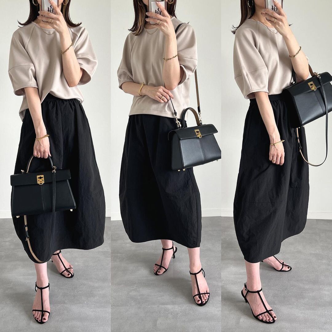 GUの「ランタンスリーブT/1,490円」は、袖の立体的なシルエットがきれい。肌にピタッと触れずに袖を通せるので、ジメジメとした季節にぴったりです。ウエストインもアウトもでき、着る服に合わせてアレンジ自在な振り幅の広さも魅力的。