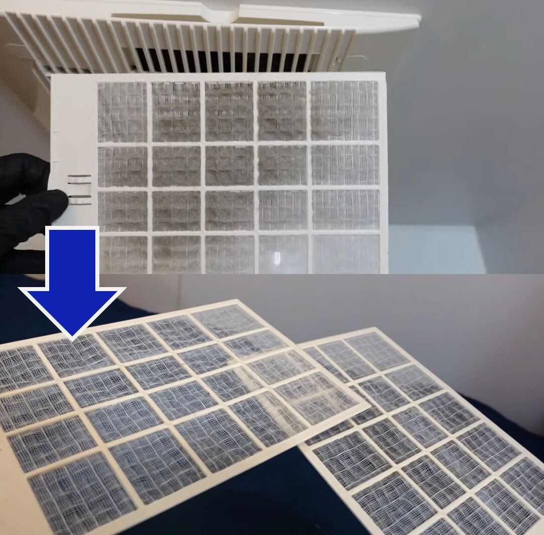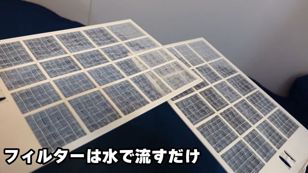 つけおきをしておいたフィルターも、水で流すだけでこんなにキレイに。身近にあるもので、手軽に浴室の掃除とカビ予防ができるので、みなさんもぜひ試してみてくださいね。