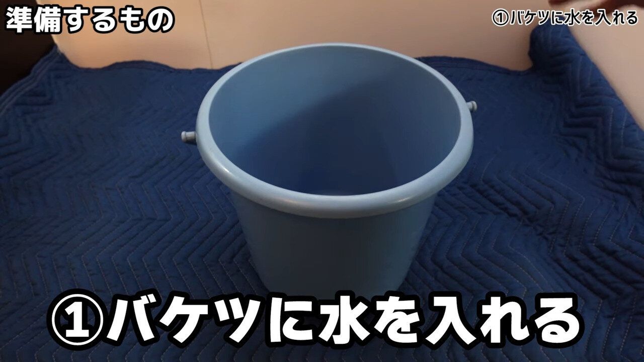 まずはバケツを用意して、半分くらい水を入れます。