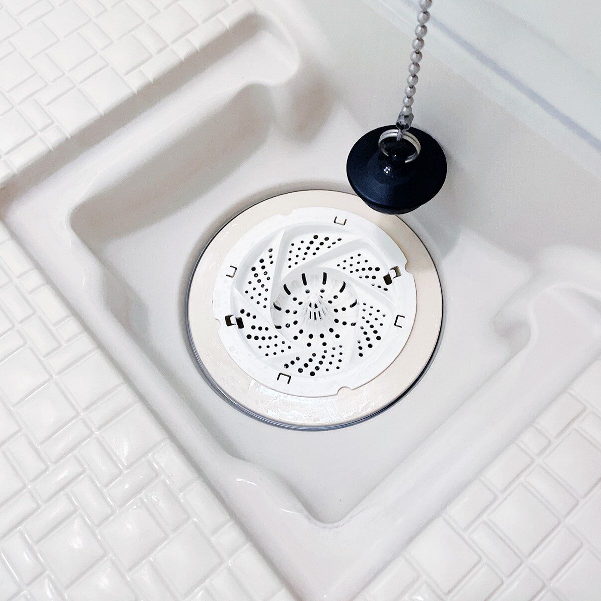 あえてゴミ受けが目に触れるように排水口カバーは外してしまうと、お風呂を出るときに忘れずに捨てられます。
