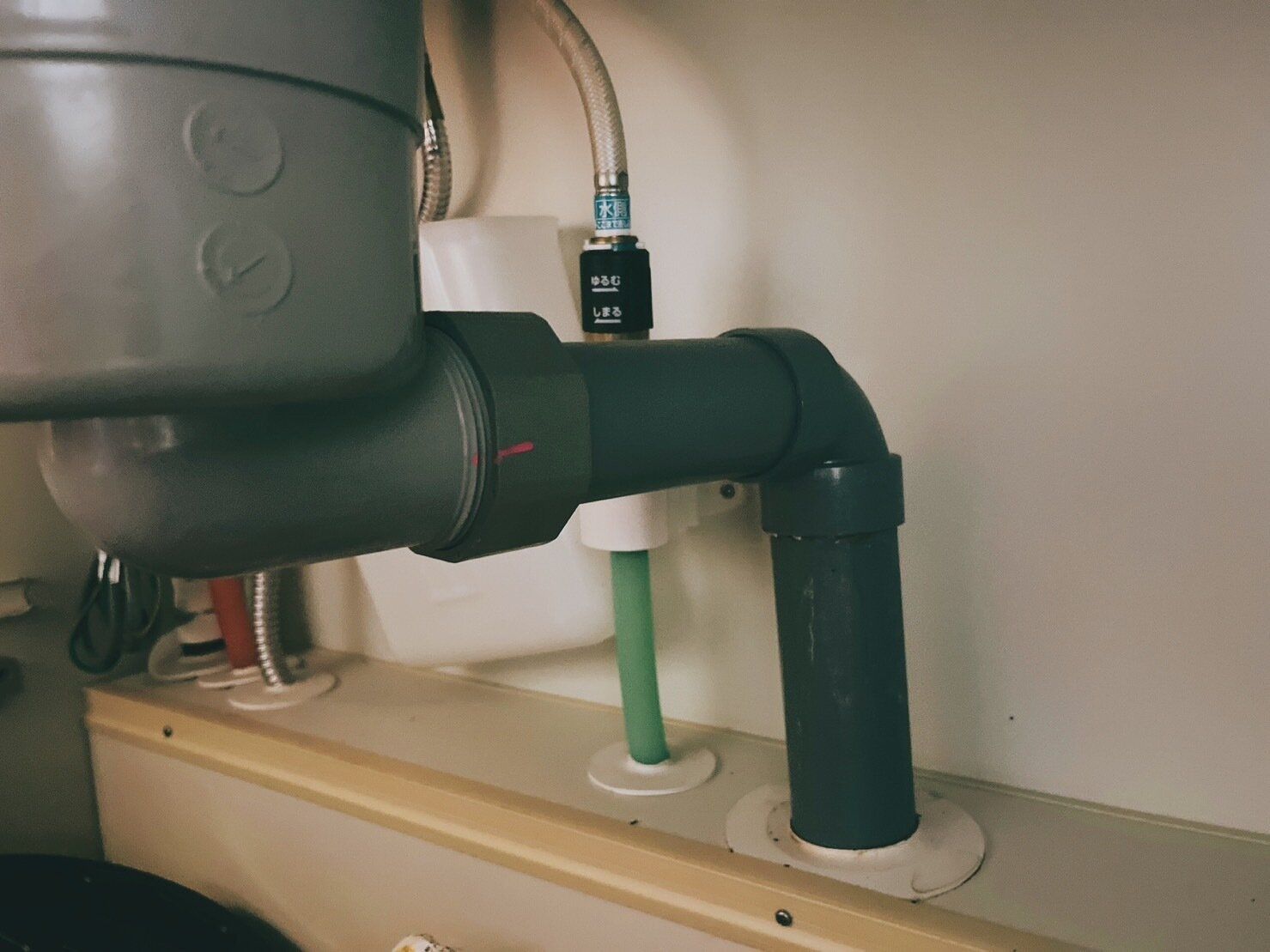 排水ホースと床下の塩ビ管の連結部分に隙間があると、下水の臭いが上がってくることがあります。確認するためには、シンク下の収納部分を確認してみてください。排水カバーを外すと、排水ホースと塩ビ管の連結部が見えます。この連結部に隙間がないかチェックしましょう。