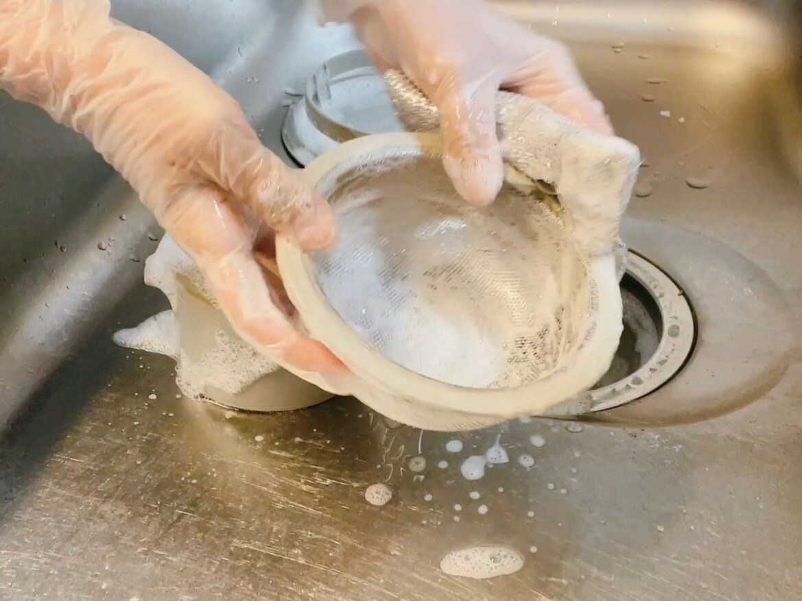 排水口のごみ受けには、食べカスや油などの汚れが付着します。こまめに汚れを取り除く必要があります。汚れを放置していると、ヌメリとなり、悪臭を引き起こします。そして、雑菌も繁殖してしまいます。これは、日々のこまめな掃除で解決することができます。ゴミ受けに排水ネットを取りつけると、溜まったごみもすぐに処分することができます。最低でも週に1回は掃除しましょう。夏場などは、悪臭とともに、虫が発生することもありますので、週に3回くらいは掃除することをおすすめします。