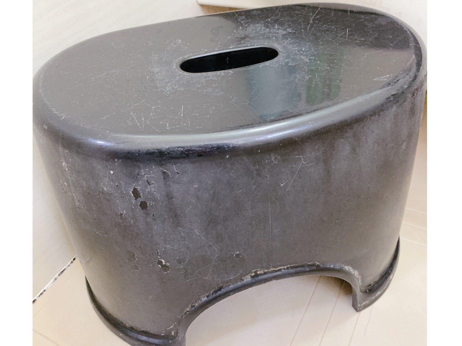 お風呂のイスには様々な汚れがついています。水垢、石鹸カス、皮脂汚れなどです。これらは性質が異なります。