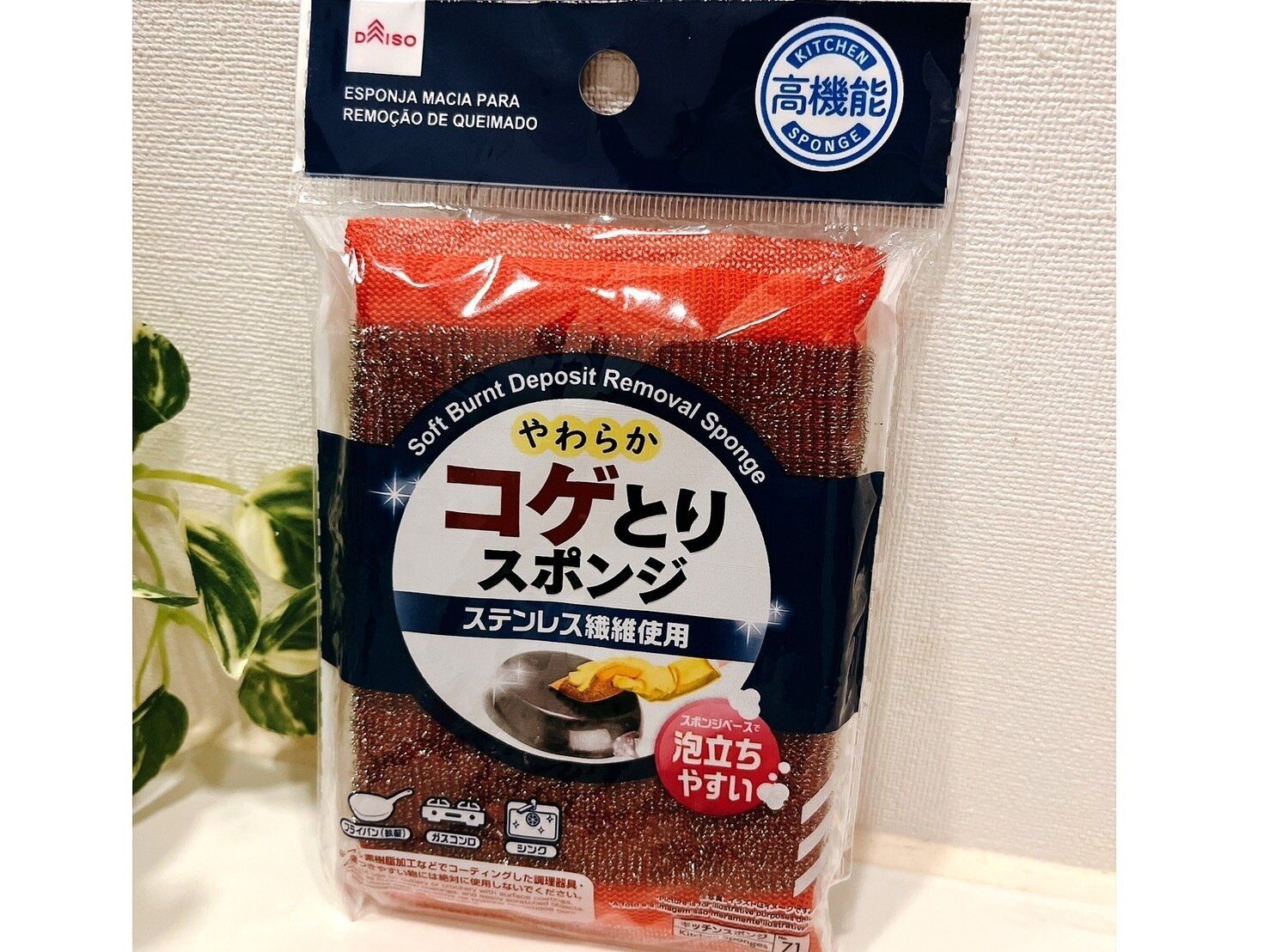 まずご紹介するのは、洗剤を一切使わずに汚れを落とす方法です。使うのはコゲとりスポンジ。別名ラストラーレスポンジ。100円均一にも販売されています。