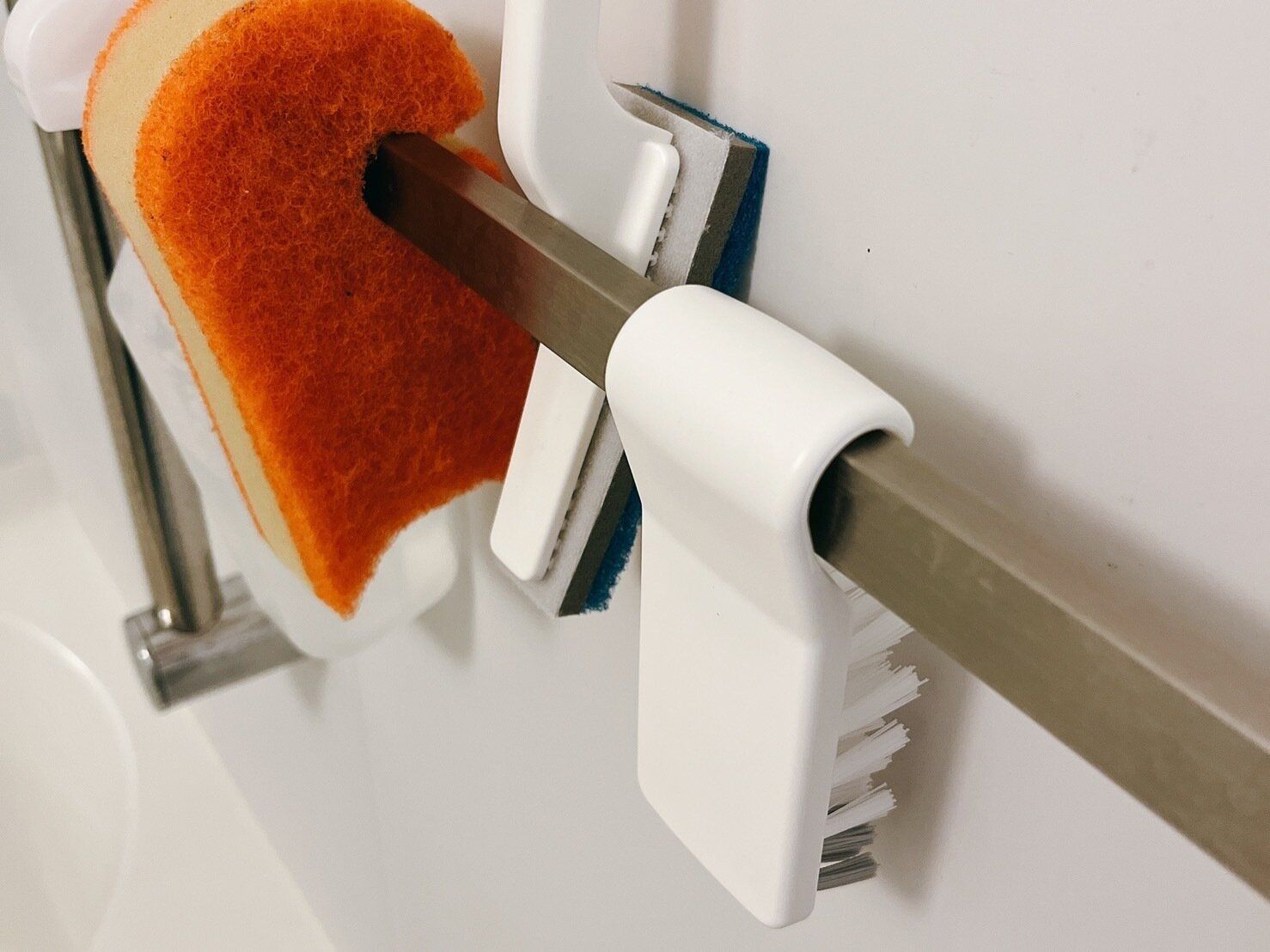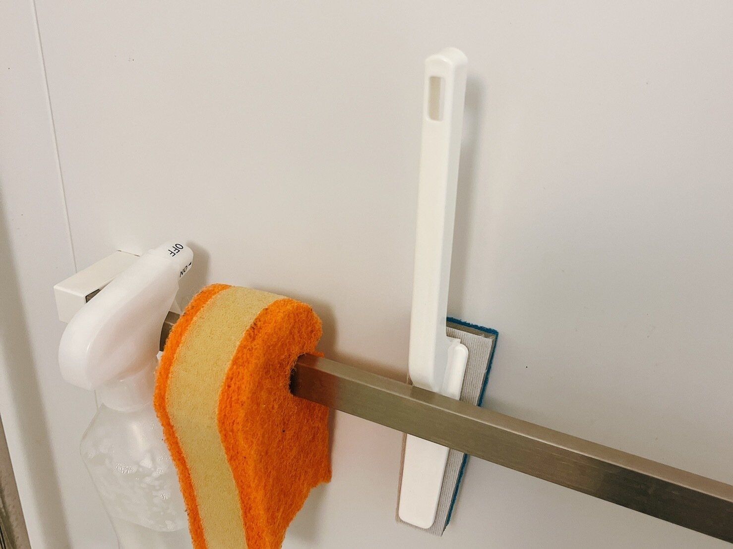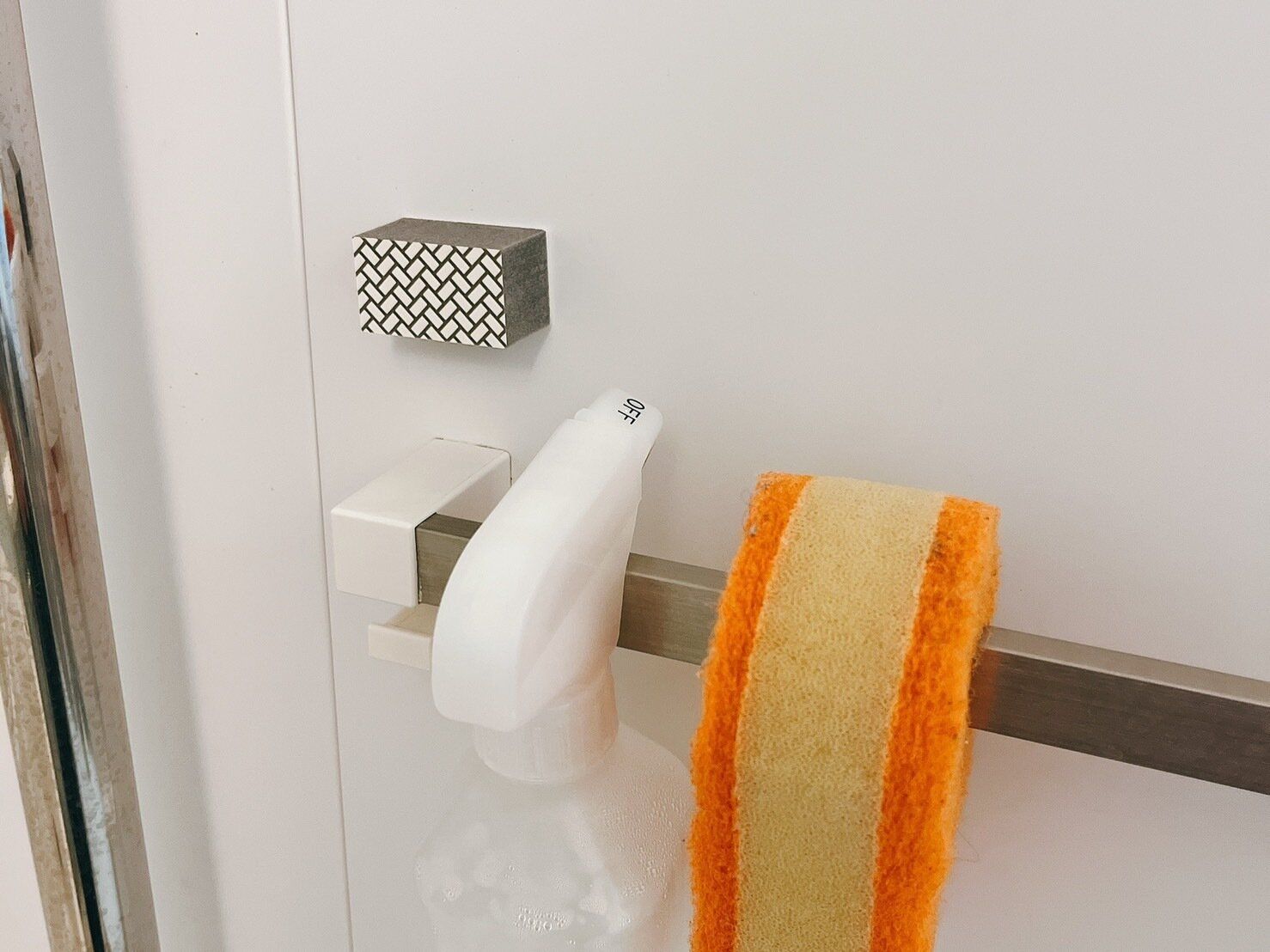 タオルバーにかけられるタイルブラシ