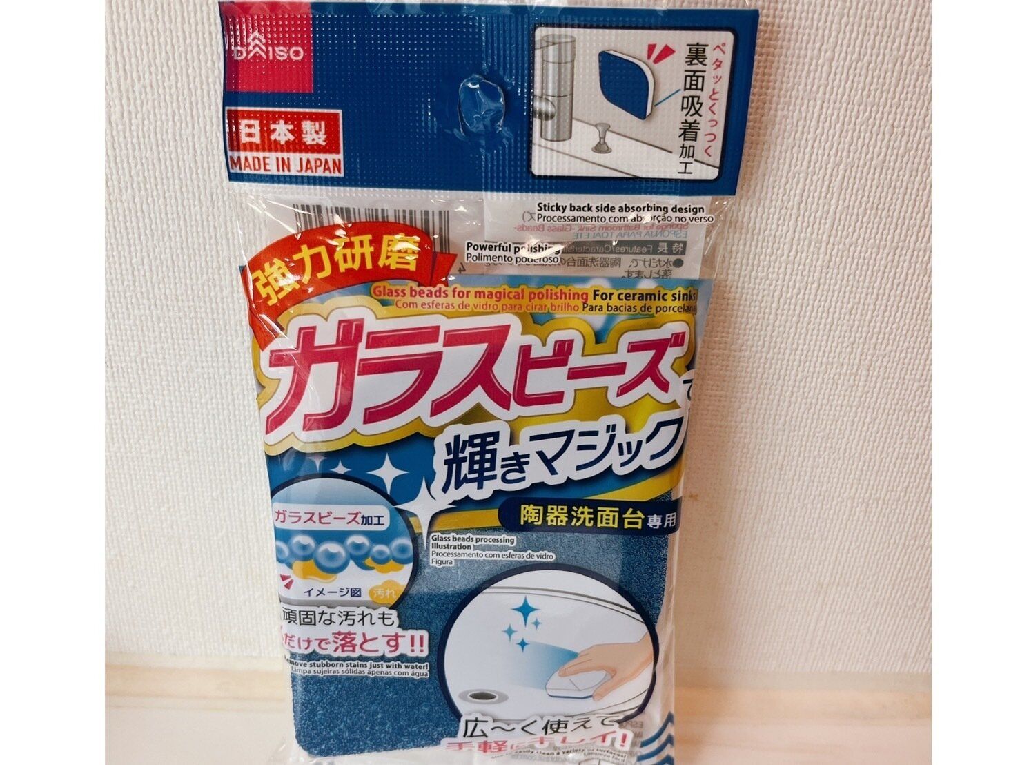 水をつけて、陶器洗面台の頑固な汚れを落としてくれる優れもの。洗剤要らずというのが嬉しいポイントですよね。