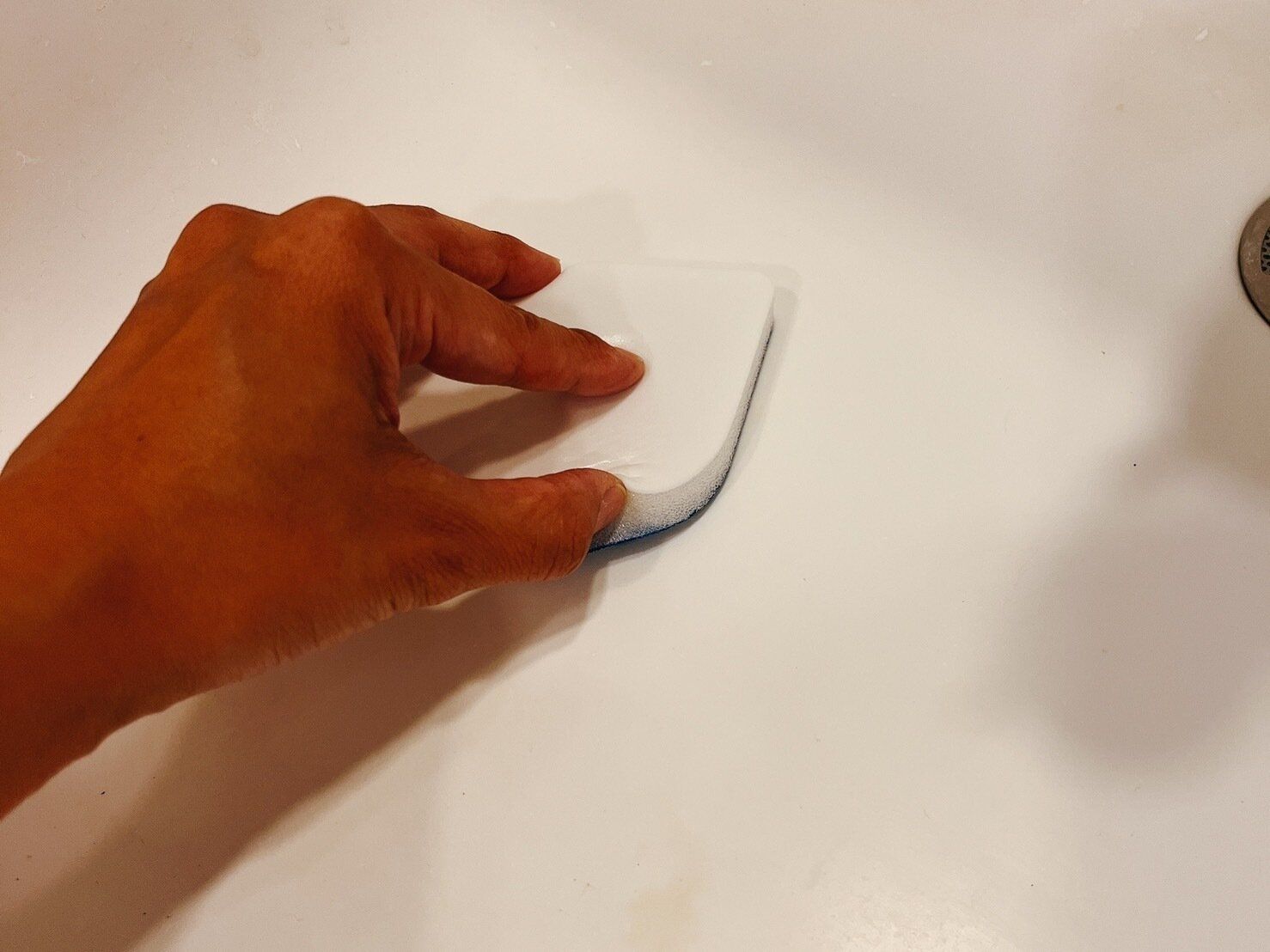 蛇口の細かな部分は、スポンジでは磨きにくいですが、メラミンスティックならストレスなく磨けます。