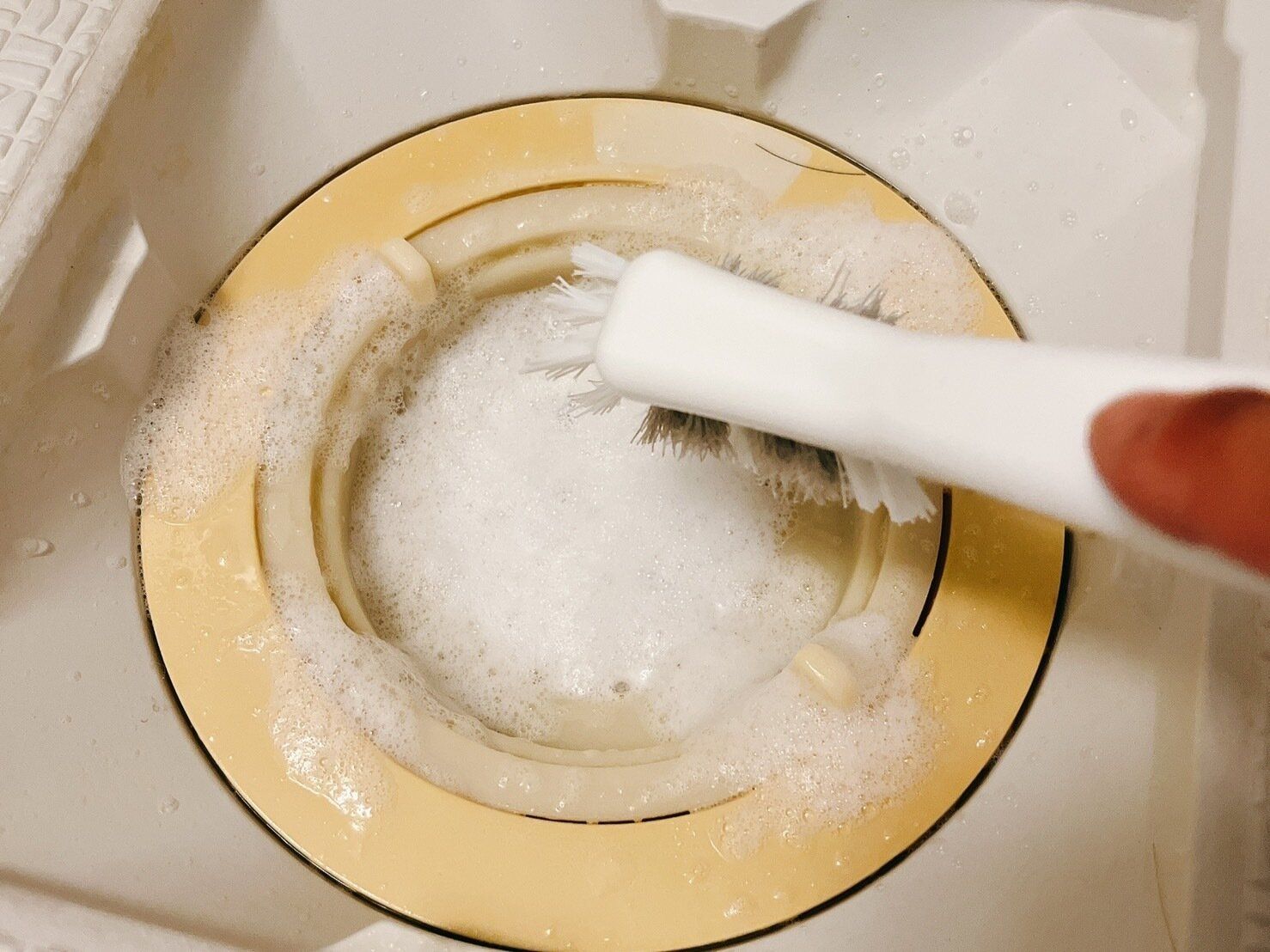 排水口には、石鹸カスなどの汚れがこびりつきがちですので、泡もちブラシでしっかりと掃除してみてください。