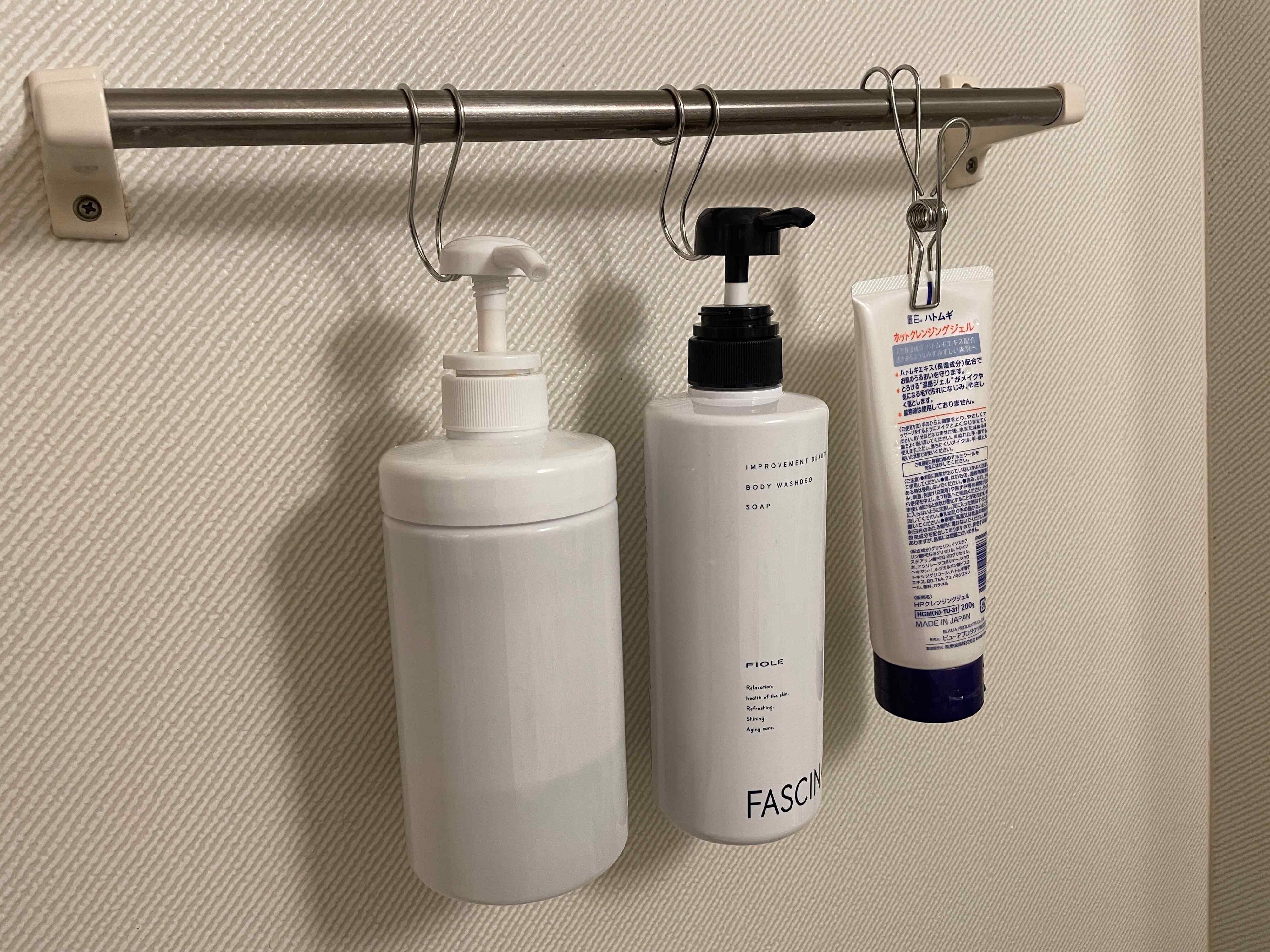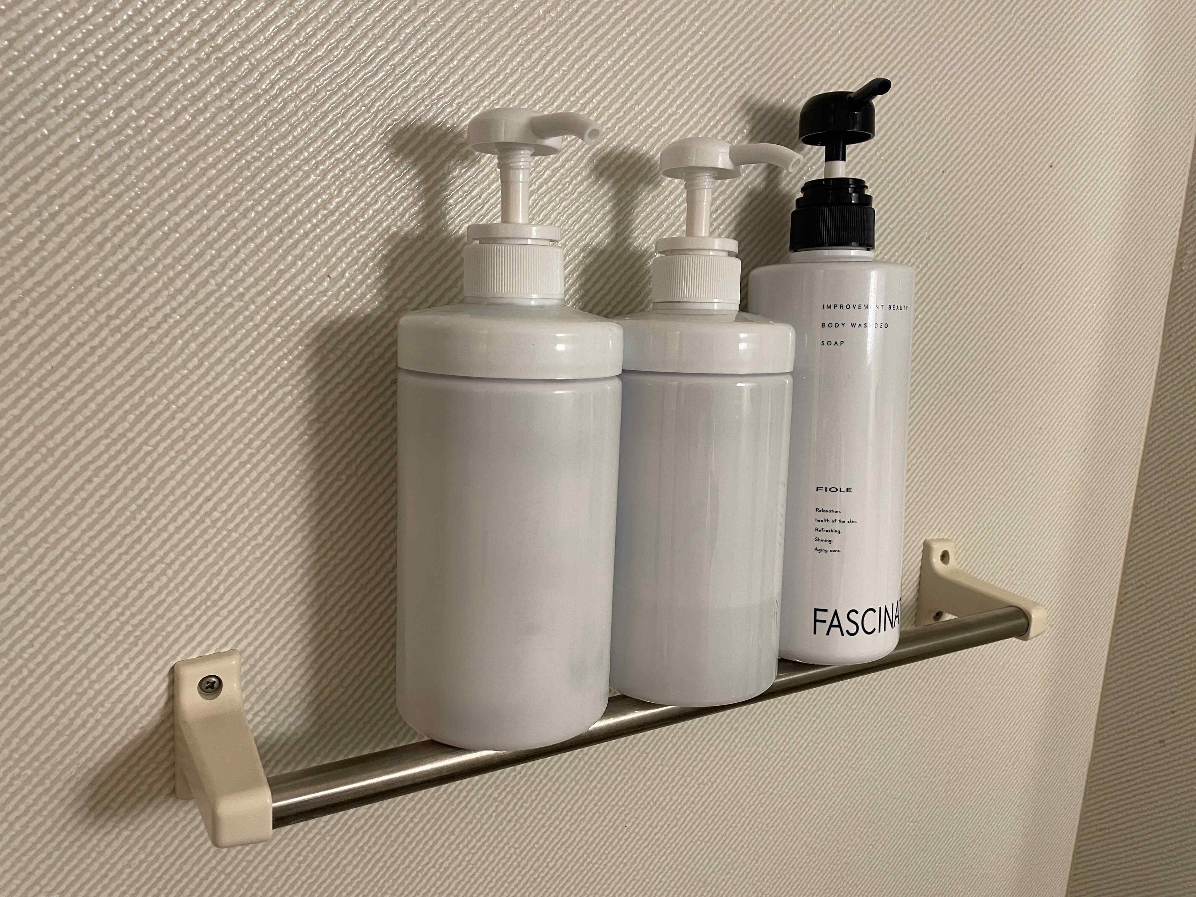 タオルバーに直接シャンプーを置くのは簡単ですが、ボトルの大きさや形によっては安定せず、すぐに落ちてしまうことも。せっかく置いても頻繁に落ちてしまってはイライラしてしまいますよね。