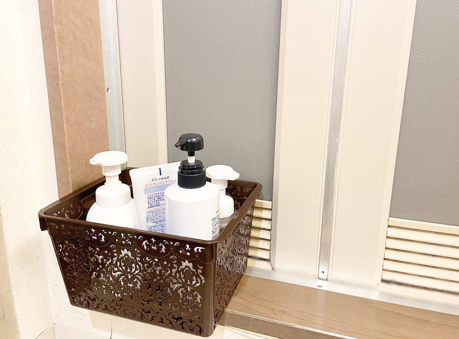 カゴに角度がついて、シャンプーがちょっと斜めになるのも、ボトルが取り出しやすくていい感じですよね。