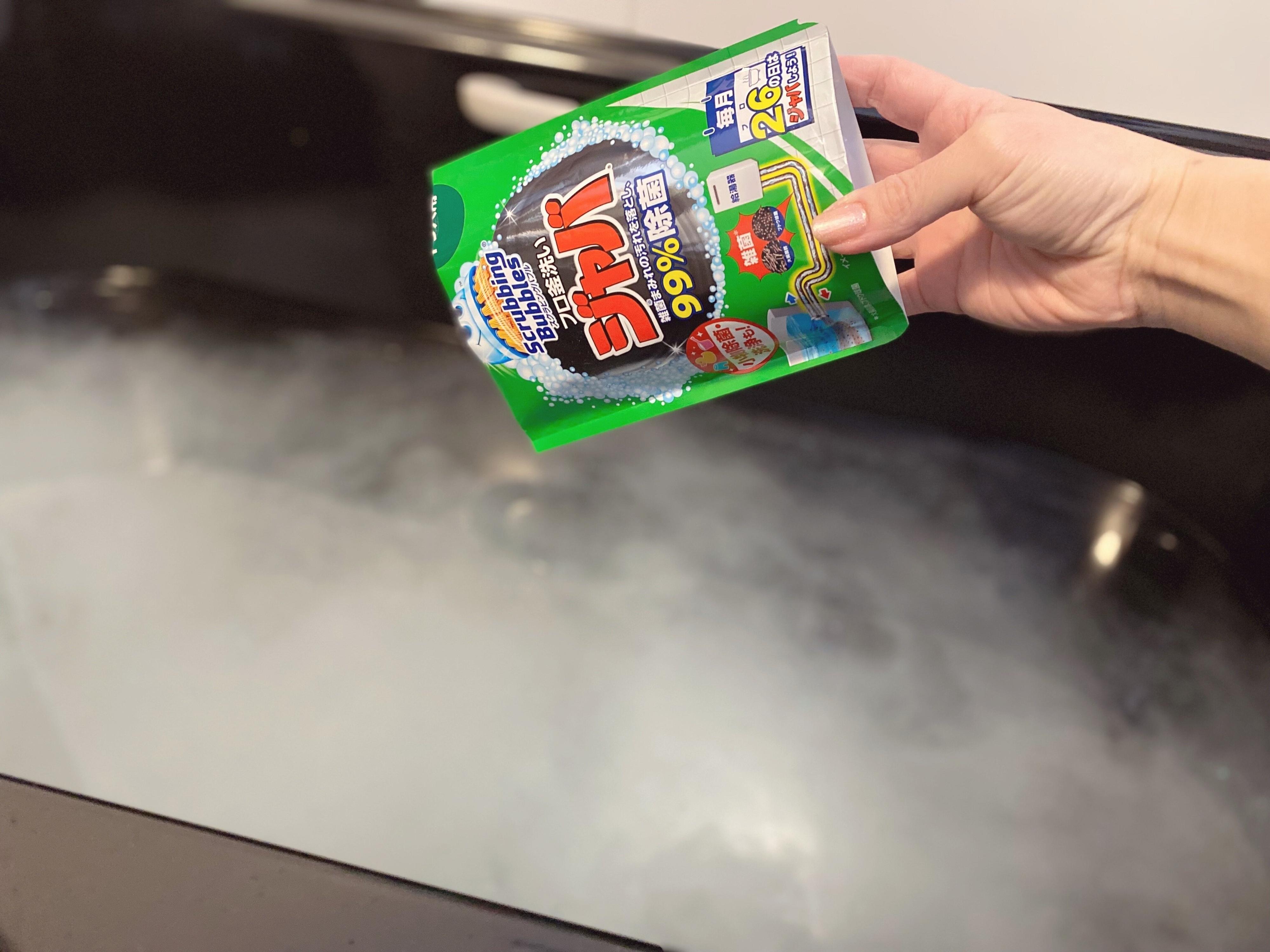 普段お風呂用の中性洗剤を使ってお掃除をしていても、白いウロコ汚れやザラザラ汚れ、黒ずみなどがスッキリ落ちていないと感じるときは、月に1回洗浄力のある洗剤を使って洗浄します。
