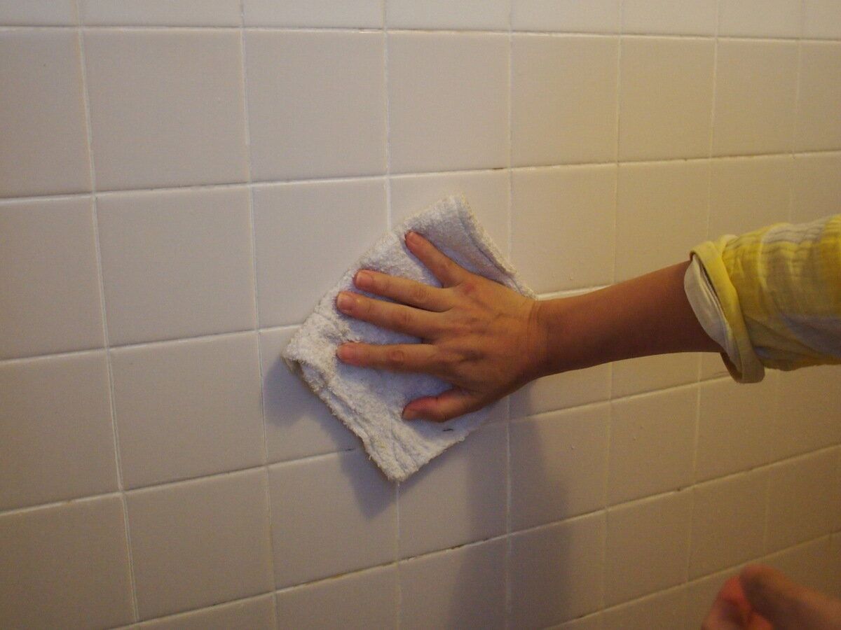 じつはお風呂掃除でいちばん重要なのがこの最後の段階なのです。お風呂場の汚れは水が原因なので、乾いた雑巾などで水分をきちんと拭き取ります。水切りワイパーなどを使って、上から水滴を下に落としてもいいですね。