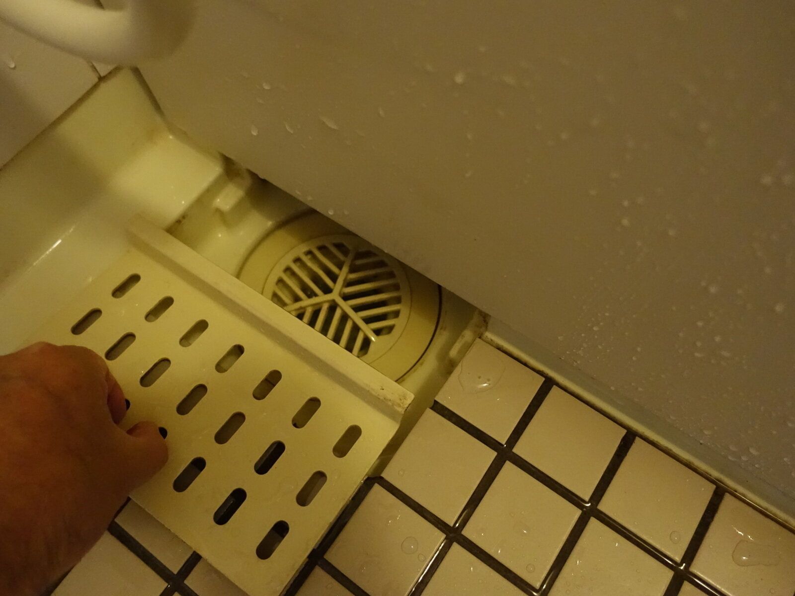 ここは髪の毛やせっけんかすがたまる場所です。頻繁に掃除していれば、簡単に取り除ける毛髪やせっけんカスも、時間が経つとヘドロ化してなかなか取りづらくなっています。とは言え、比較的掃除しやすい場所なので、気にしている人は多いでしょう。