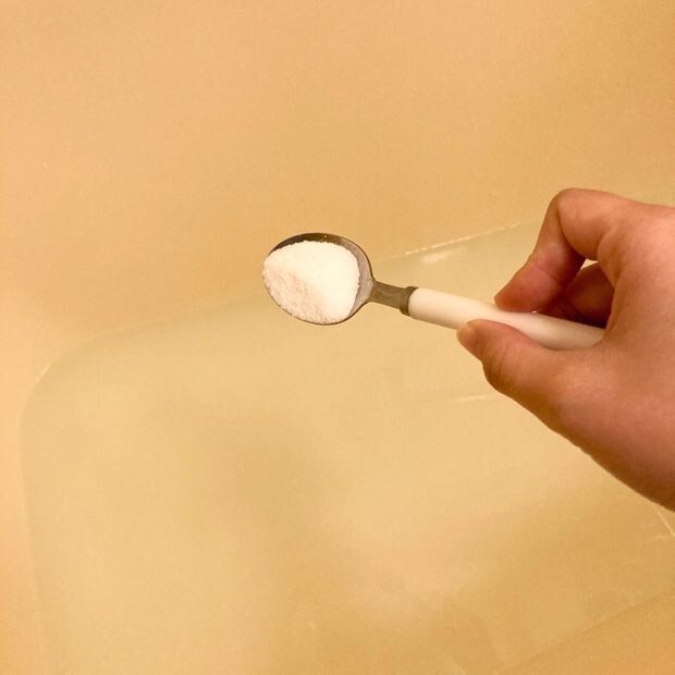 重曹が40度程度のお湯に溶けやすいので、これくらいの温度でお湯をはりましょう!