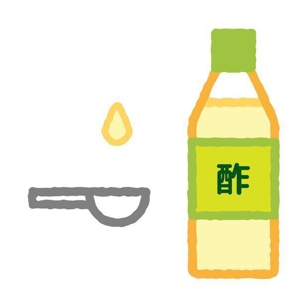 お酢と水の割合は1:1で大丈夫です。お酢が100mlだとしたら、水も100ml入れてください。