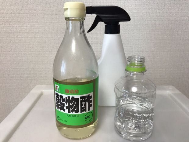 鏡の水垢は、どの家庭にもある「お酢」を使って落とすことができます。お酢は酸性なので、水垢のアルカリ性を中和してくれます。また、お酢を鏡に噴射することができる、スプレーボトルを用意しておきましょう。