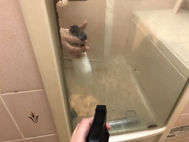 ①シャンプーや石鹸などが鏡についたら、石鹸カスにならないように確実に洗い流しましょう。