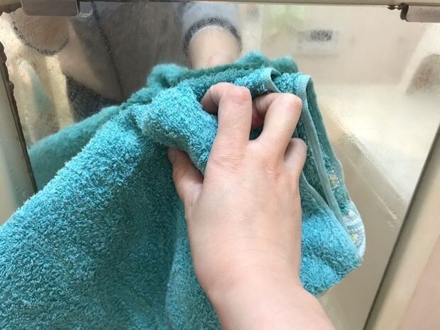水で流したあとは、水垢が残らないように乾いたタオルでしっかりと拭いてください。