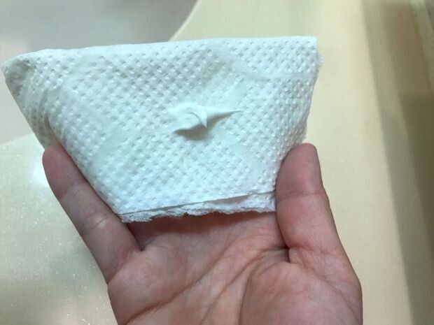 時間になったらパックを剥がして、剥がしたもので鏡を磨きましょう。円をかくようにこすってあげてください。
