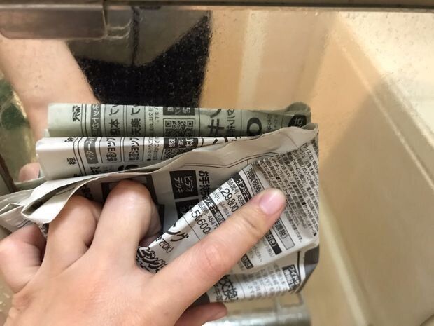 鏡の水垢を落とすのには、新聞紙も有効なんです。新聞紙もどの家庭にもあって気軽に用意できるものですよね。新聞紙のインクの油分が鏡についた油成分を落としてくれます。
