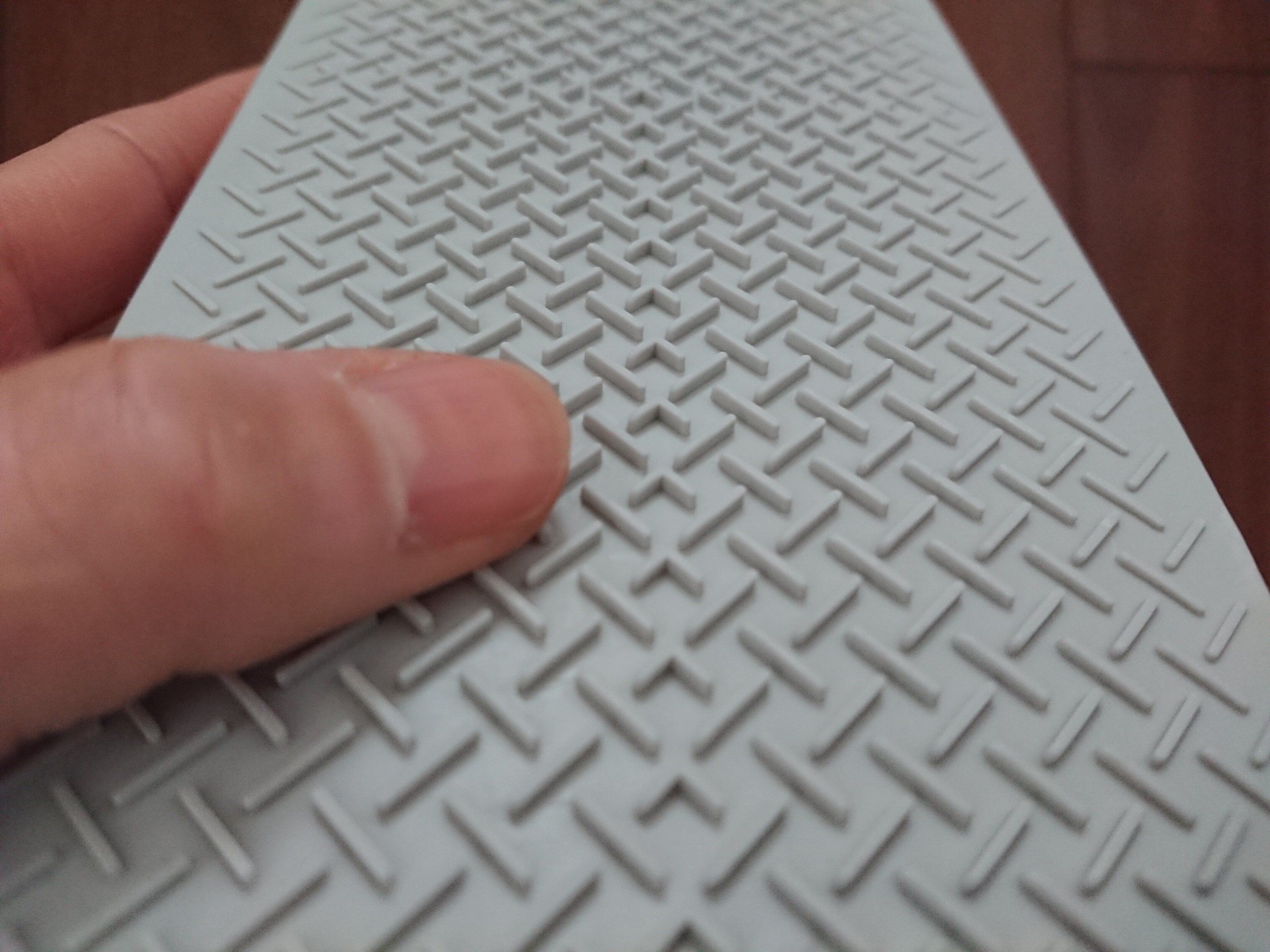 指で押すと少しだけ凹むくらいの弾力で、柔らかすぎず、硬すぎずといった感じ。説明にも書いてありますが、中央の凸型構造とこの柔らかいクッション素材の組み合わせで、上から力が加わったときにしっかりと床になじむ感じがします。