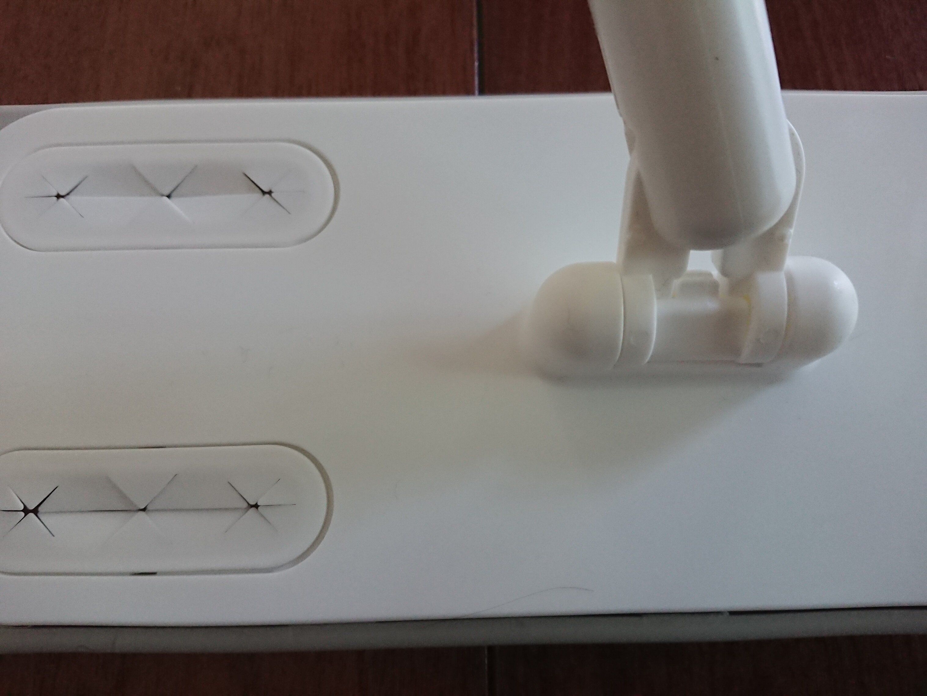 4つの差し込み口にはしっかりと切れ込みが入っているので、難なく装着することができます。切れ込みが少し硬めなので、爪先などが気になる方は、割りばしのようなものか、平らなアイスの棒のようなもの(ホームセンター等で販売してるそうです)で差し込むといいかもしれません。