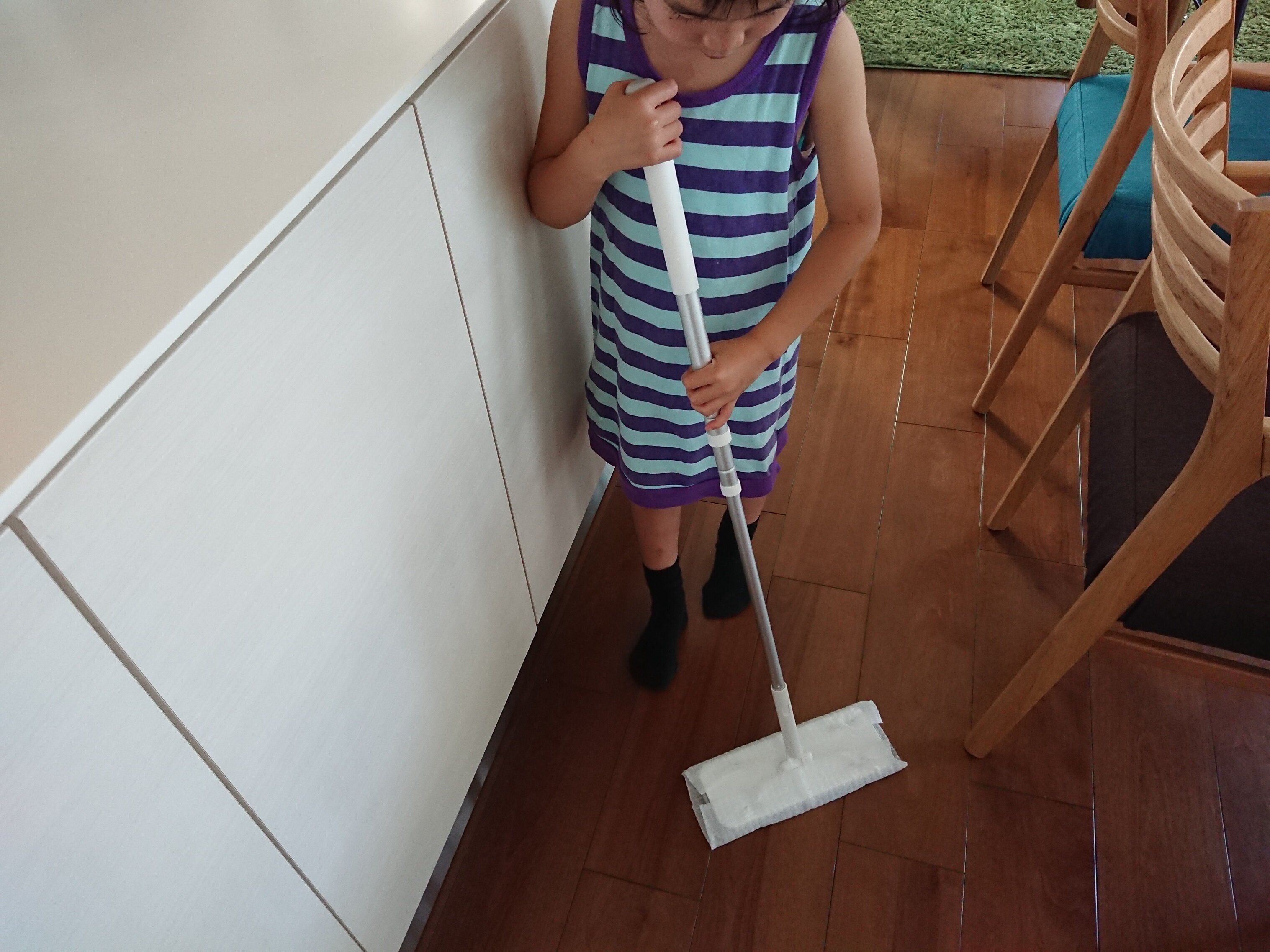 リビングを掃除してみると、シートの前面が汚れたので、床としっかり密着してゴミをキャッチしているのが実感。重さも丁度よいですし、過去に使っていたフローリングワイパーよりも軽く感じました。