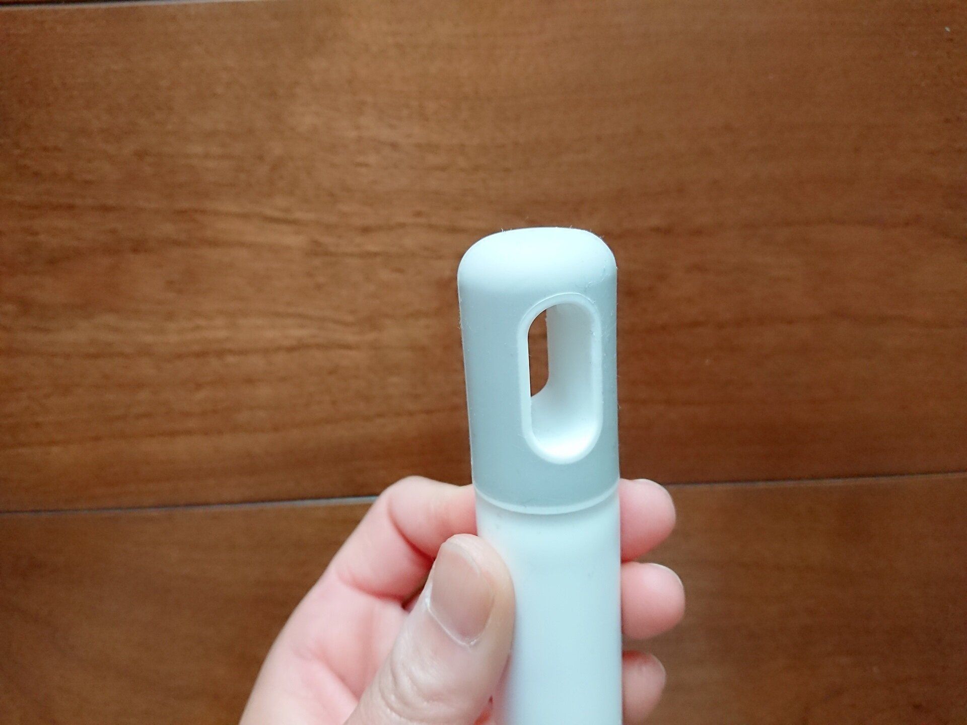 グリップ先端は合成ゴムでできているので、別の用事で少し手から離さなければならないとき、壁に立てかけたりしますよね?そんなときは倒れにくいし、万が一倒れたとしてもゴムなので壁紙や床などを傷つけてしまうことが少ないと思います。