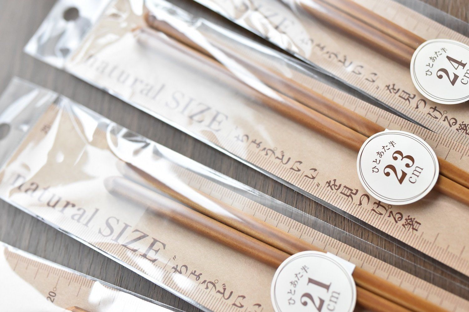 ニトリの「natural SIZE ちょうどいい、を見つける箸」は、4サイズ(19cm、21cm、23cm、24cm)あるので、手のサイズに合わせて選ぶことができます。