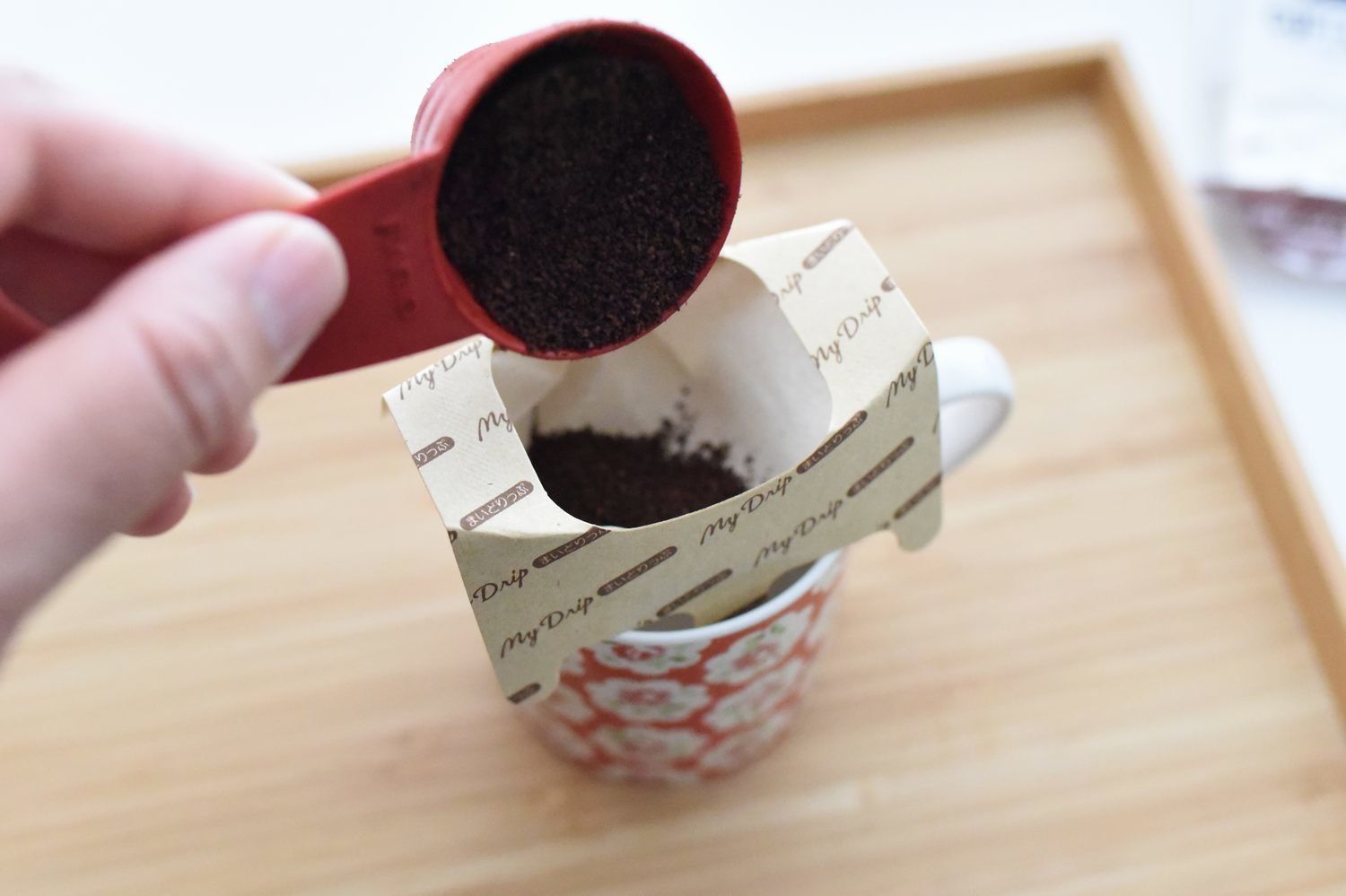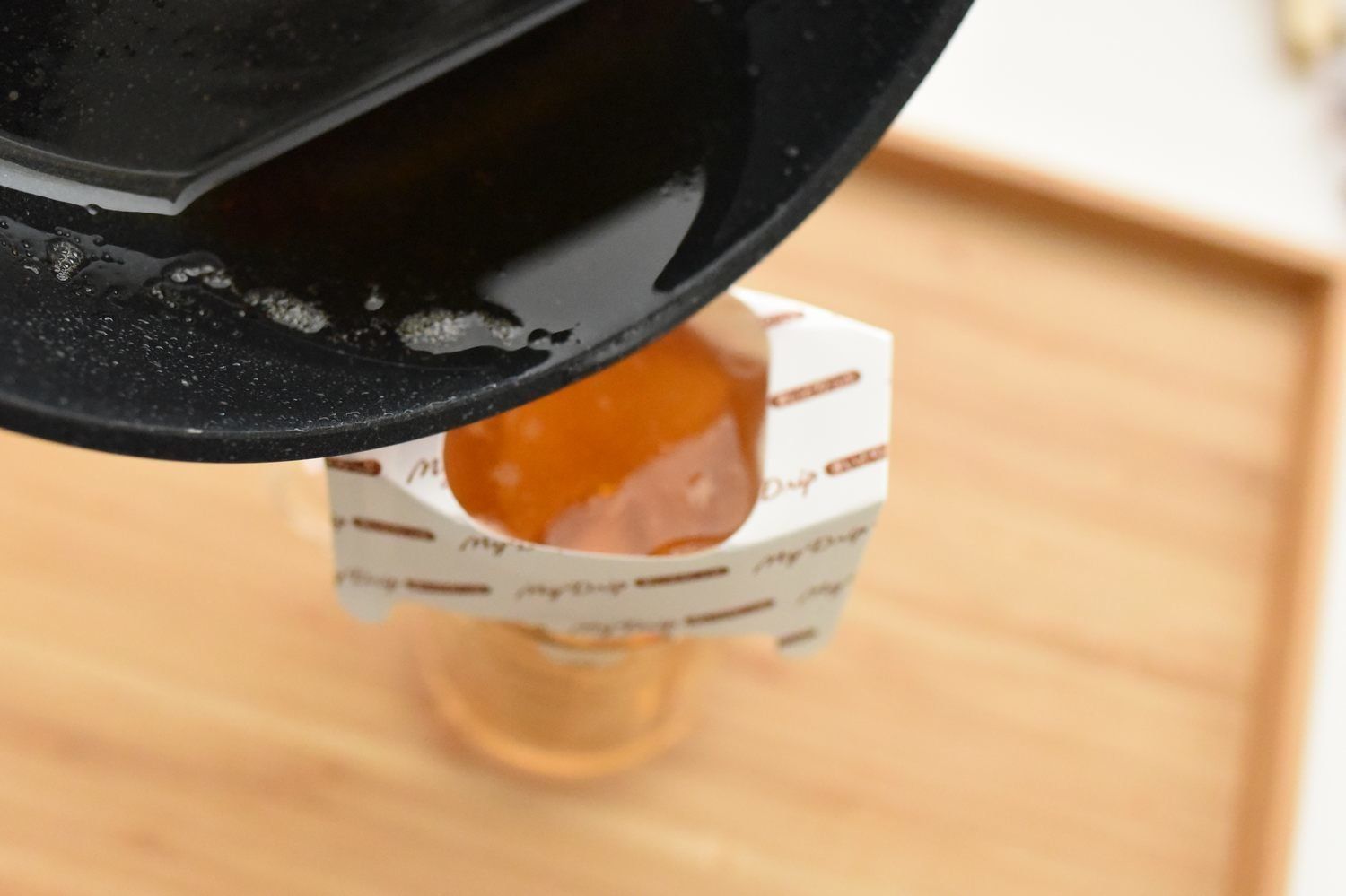 市販の1杯抽出型のレギュラーコーヒーの場合、マグカップやタンブラーにドリップするとお湯を入れすぎてしまい薄いコーヒーになってしまったことはありませんか?