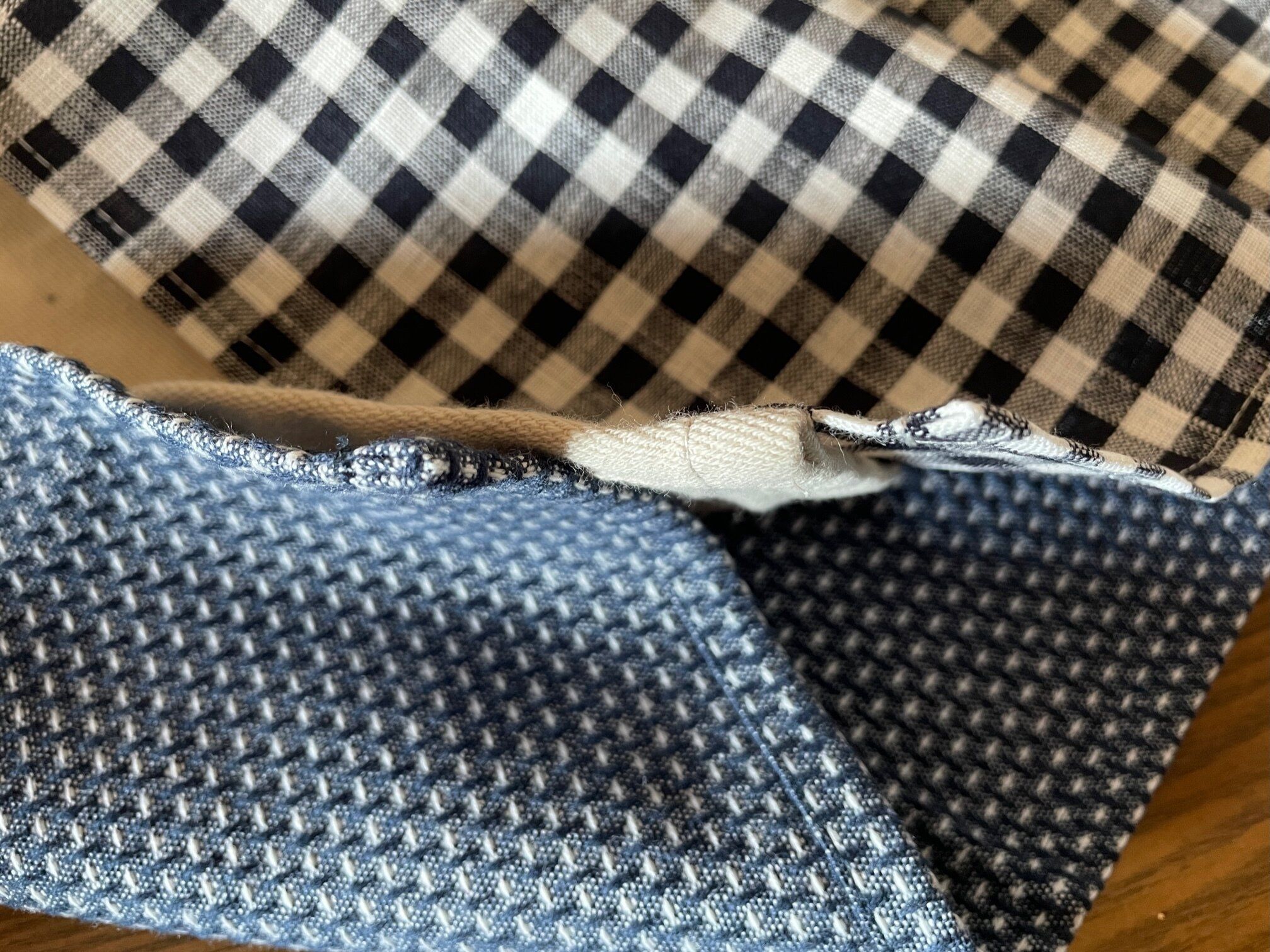 生地がしっかりとしているので、キッチンクロスという感じがしません。カゴの上にかけて目隠し代わりに使ったりなど、いろいろな使い方ができますね。