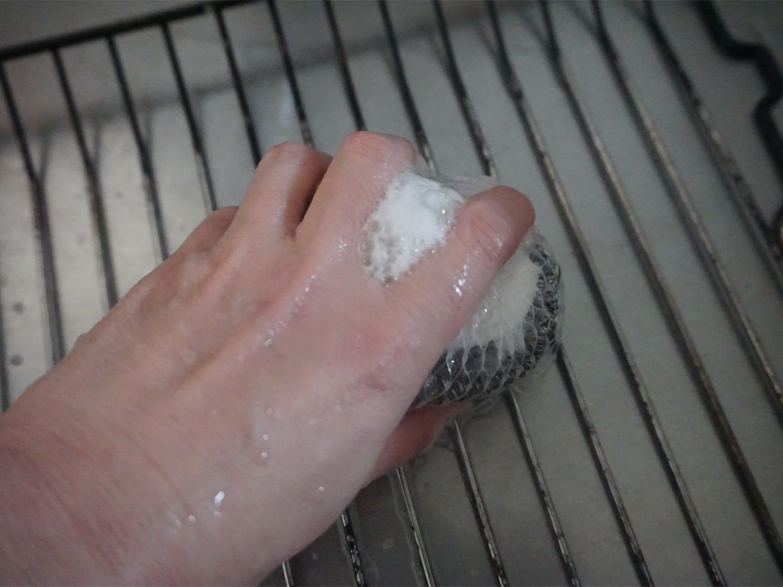 素材によっては傷をつけてしまうため、使えない箇所も多いですが、例えば魚焼きグリルやオーブン皿や網などの焦げつき汚れを落とすのには役立ちます。ただ、普通の金たわしは金属部分しかないため、洗剤を使っても泡立たず、単なるこすり洗いになってしまって、もどかしいことも。そんなときにおすすめなのが「泡立つステンレスたわし」です。