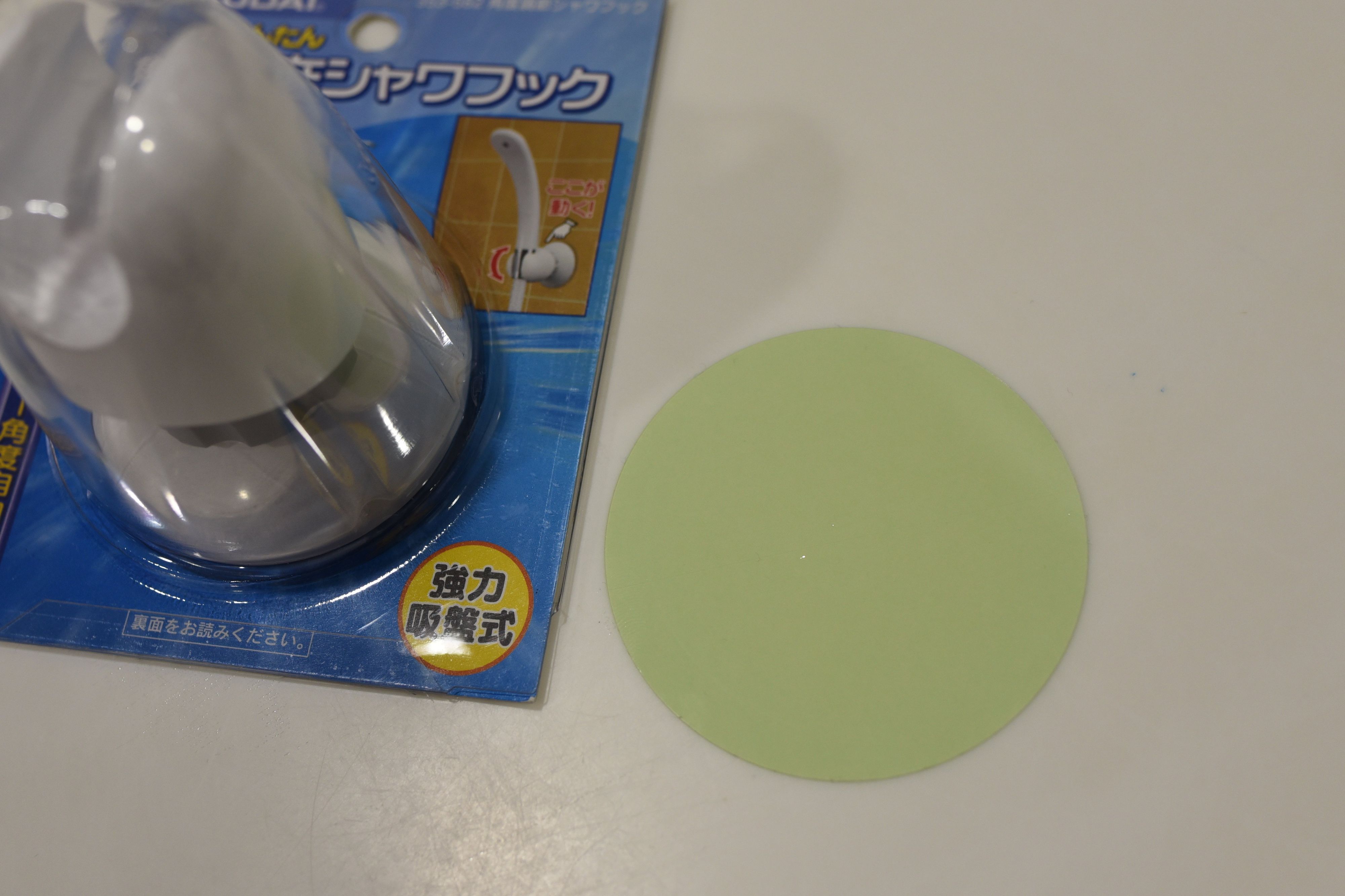 今回紹介するのはニトリの「とりつけかんたん 角度自在シャワフック」(税別740円)。吸盤式なので簡単に取り付けることができます。壁面にざらつきがある場合でも、吸盤をつけやすくするためのシールが同封してあります。