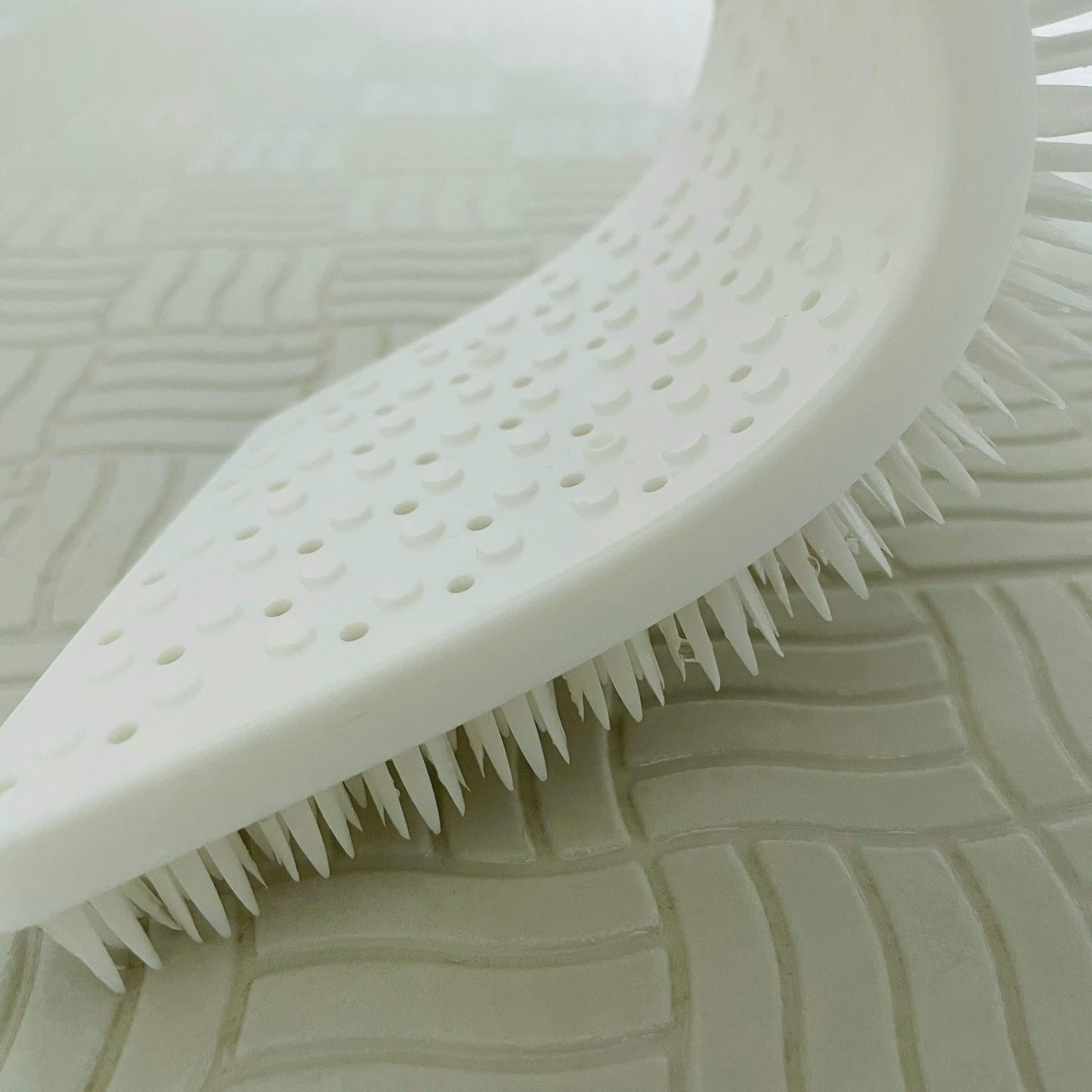 傷つけにくい特殊な繊維で出来ていて、洗剤を使わずに水だけでも床のタイルの隙間汚れをしっかりとかき取ります。