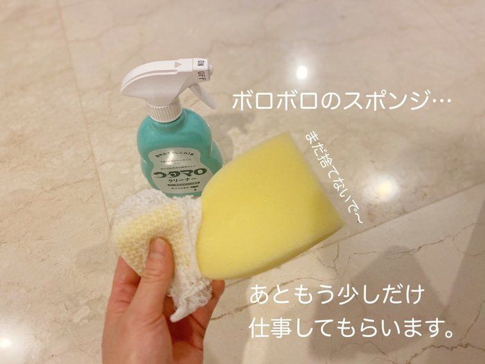 サンキュ!STYLEライターちぃこさんは、ボロボロになったスポンジとウタマロクリーナーでキッチン掃除をしているようです。ウタマロクリーナーをつけたスポンジで油汚れを落としたら、マイクロファイバークロスで水拭きし、最後は雑巾で乾拭きすればピカピカに!ガスコンロの汚れもこの手順できれいになるといいます。