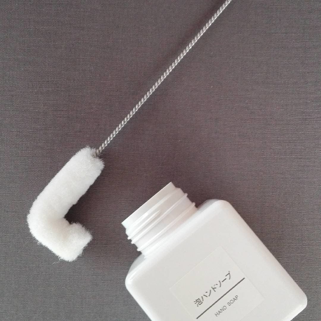 kogukogumintさんは、泡ハンドソープなどのボトル掃除に、無印の「ボトルの隅まで洗えるボトル用ブラシ」を活用。洗ったあとに、ボトルの水滴までしっかりと吸収してくれるのでとても便利なのだとか。